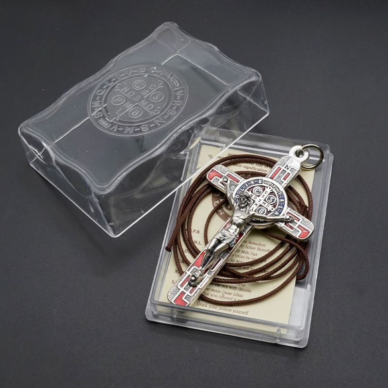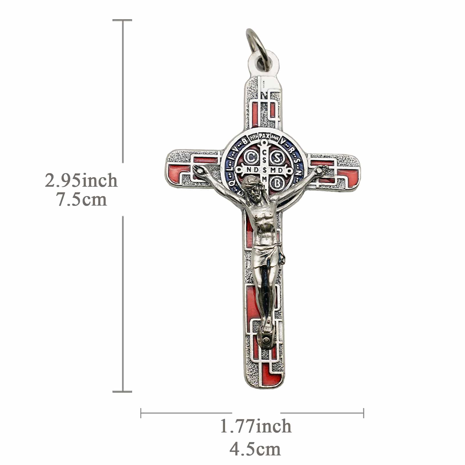 合金圣本笃十字架-镀银-珐琅处理-带包装盒-7.5×4.5cm-红色