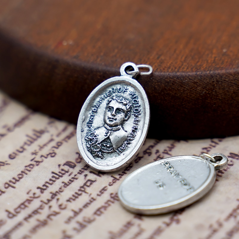 DIY小吊牌-达米盎神父(痳疯患者主保)-锌合金-2.2cm