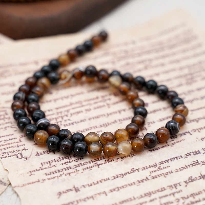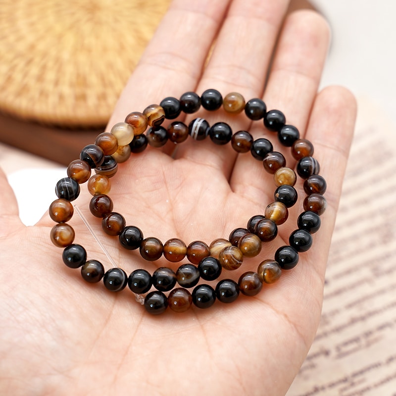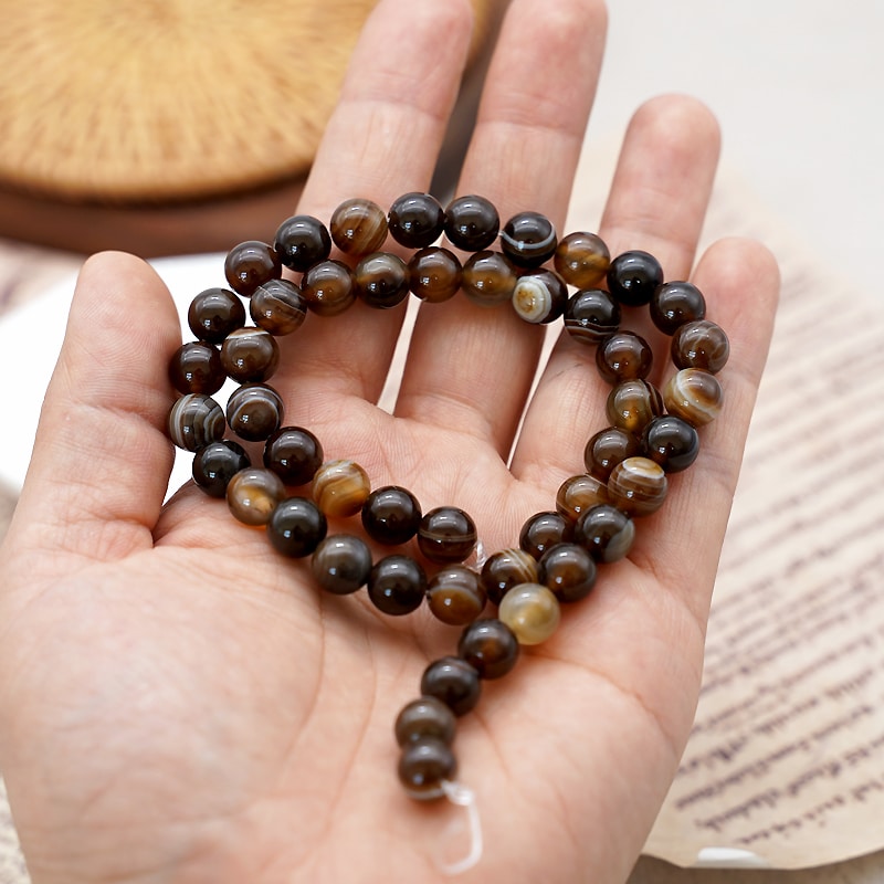 DIY珠子-棕色缠丝玛瑙