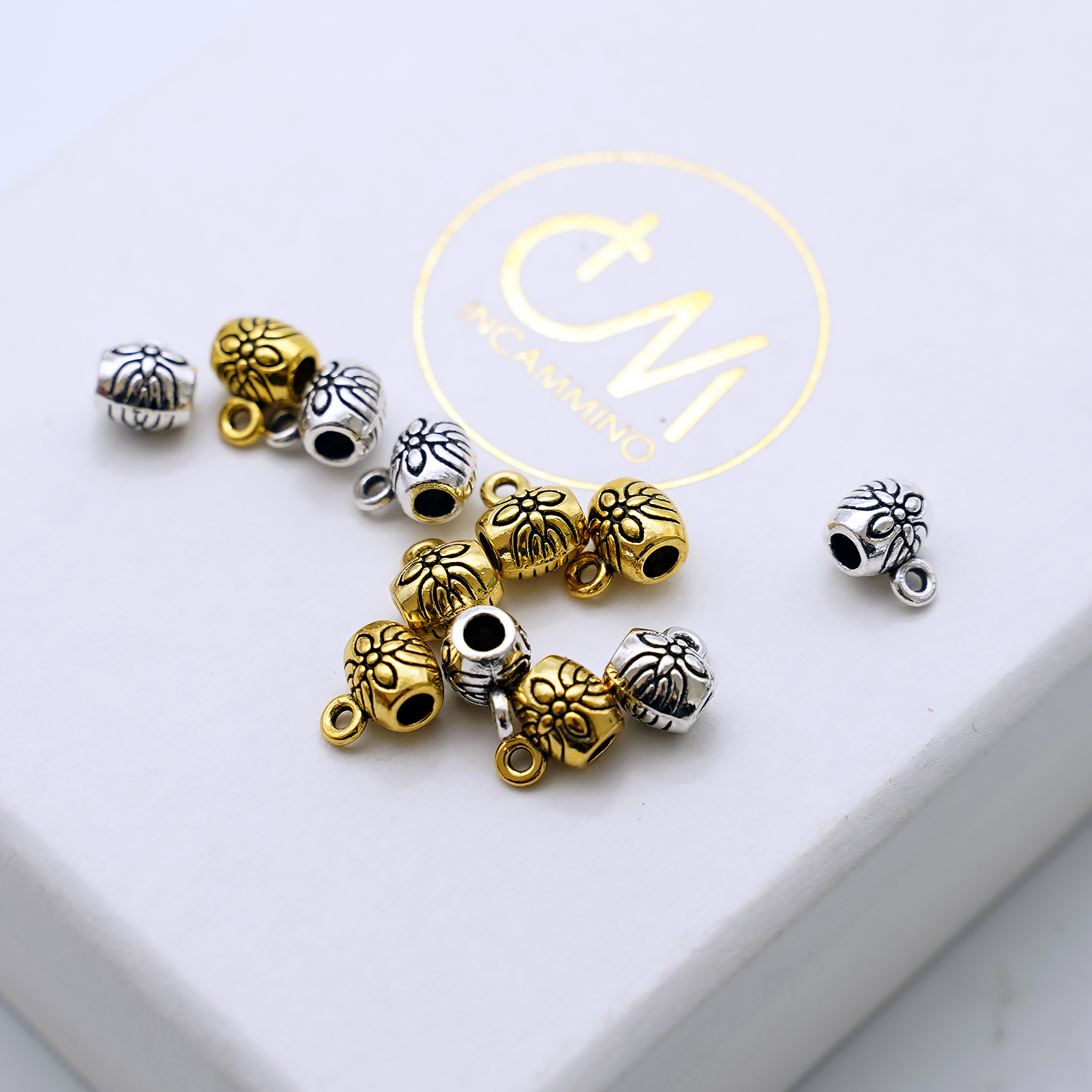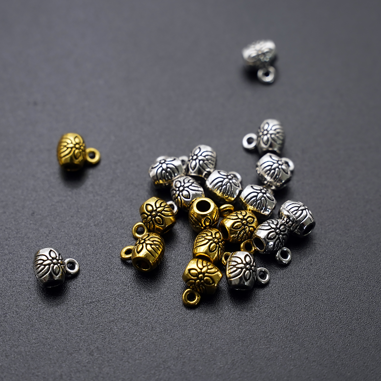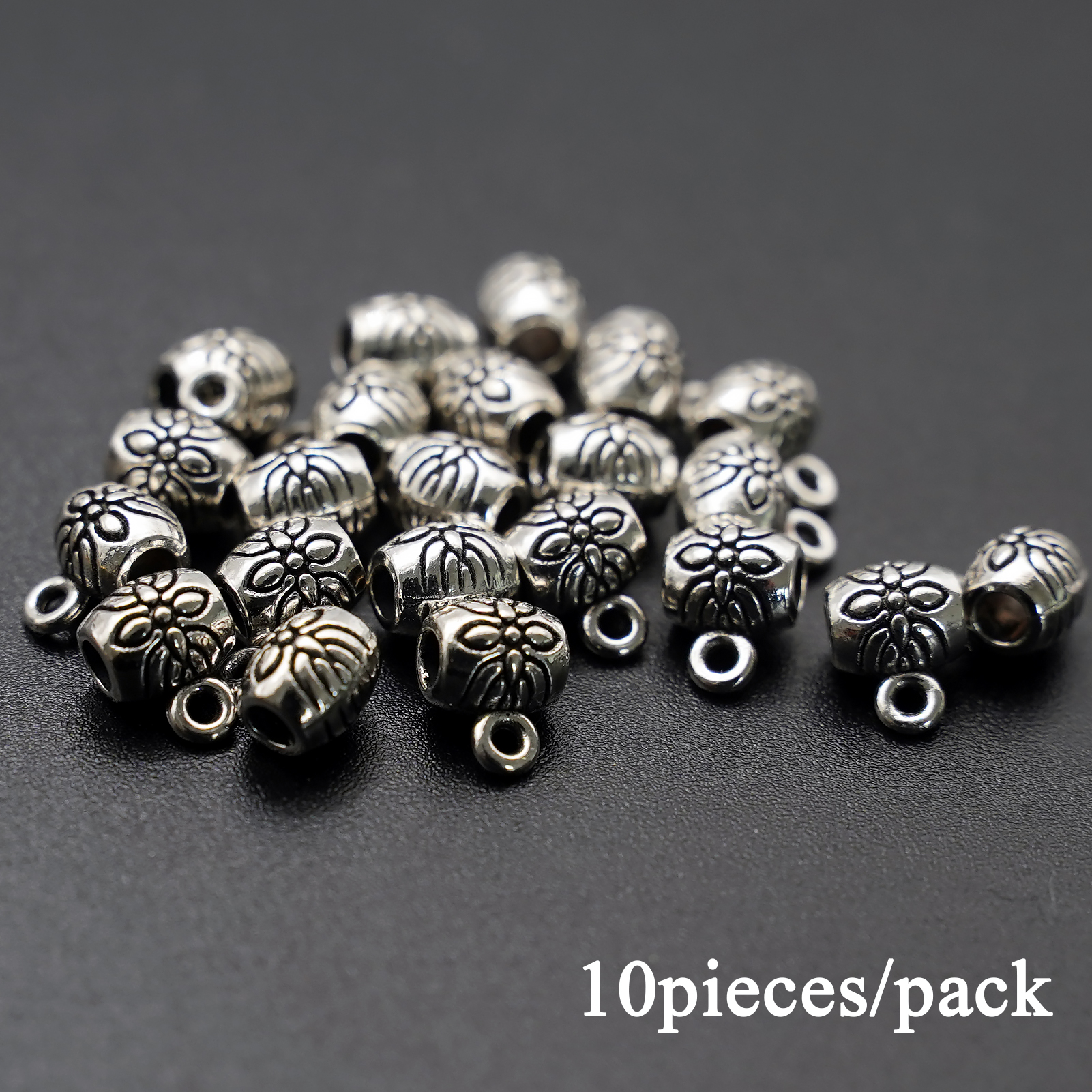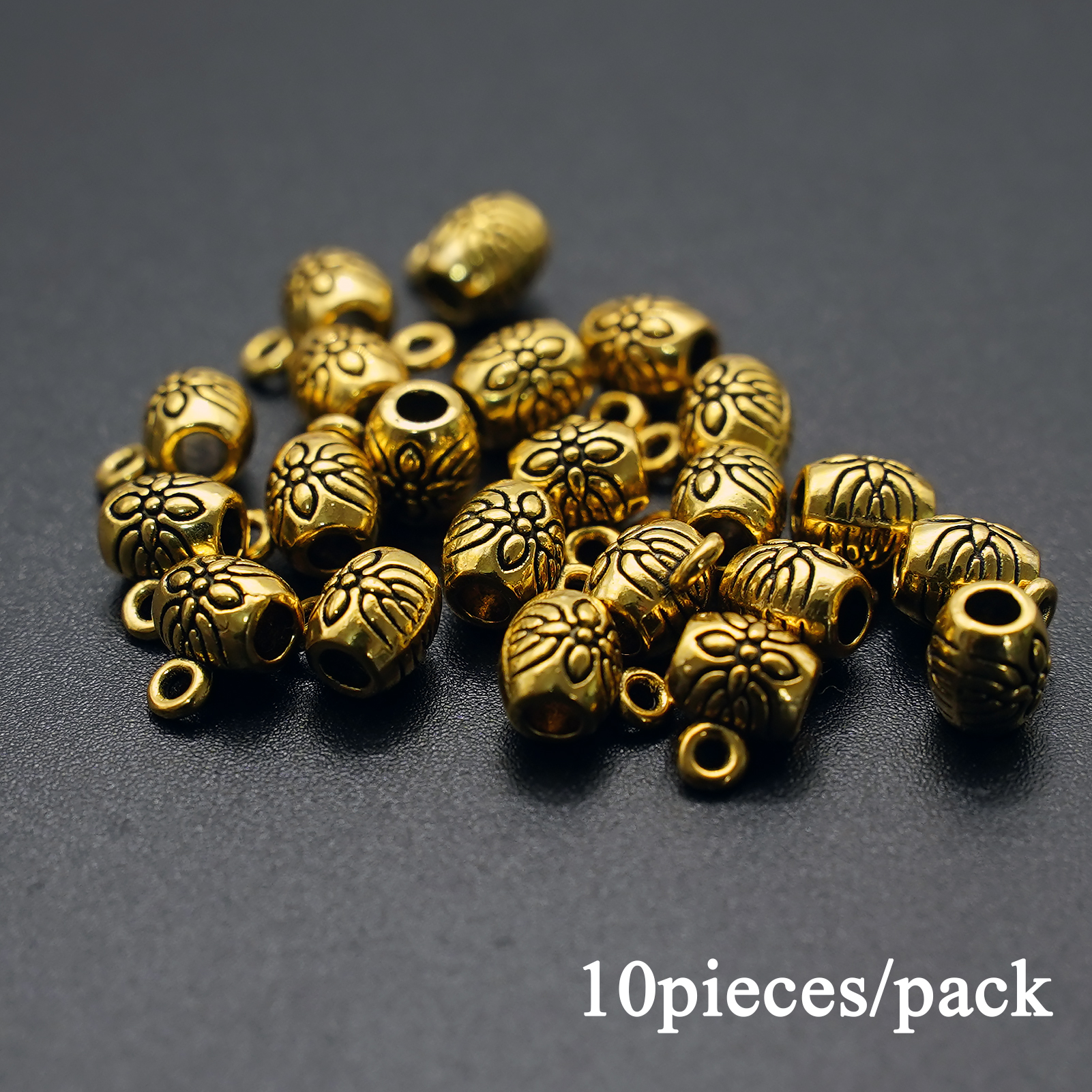 DIY三通鼓珠-带花纹-带圈-0.6×0.5cm-10个/包