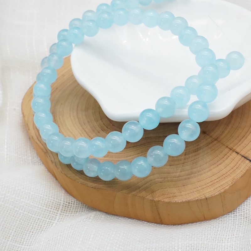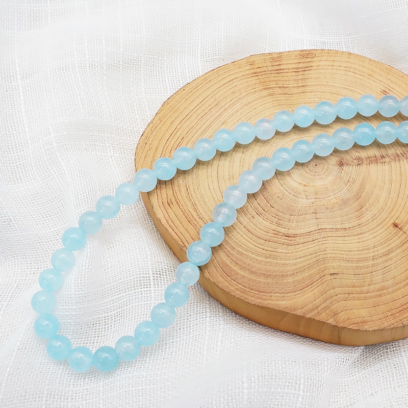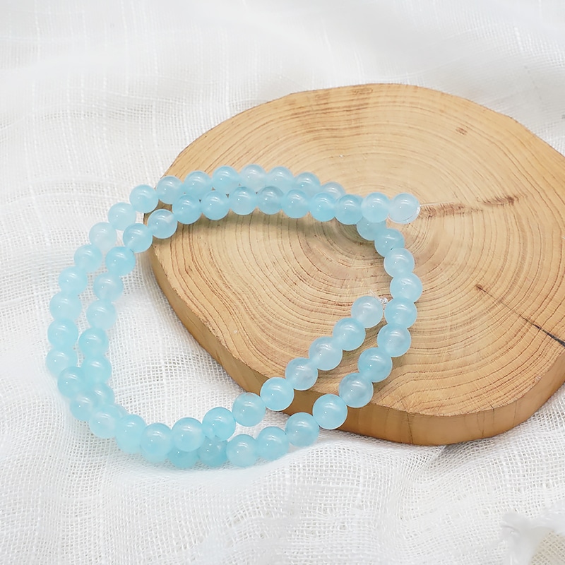 DIY珠子-浅蓝玉髓6mm(1条约60颗)孔径约1mm