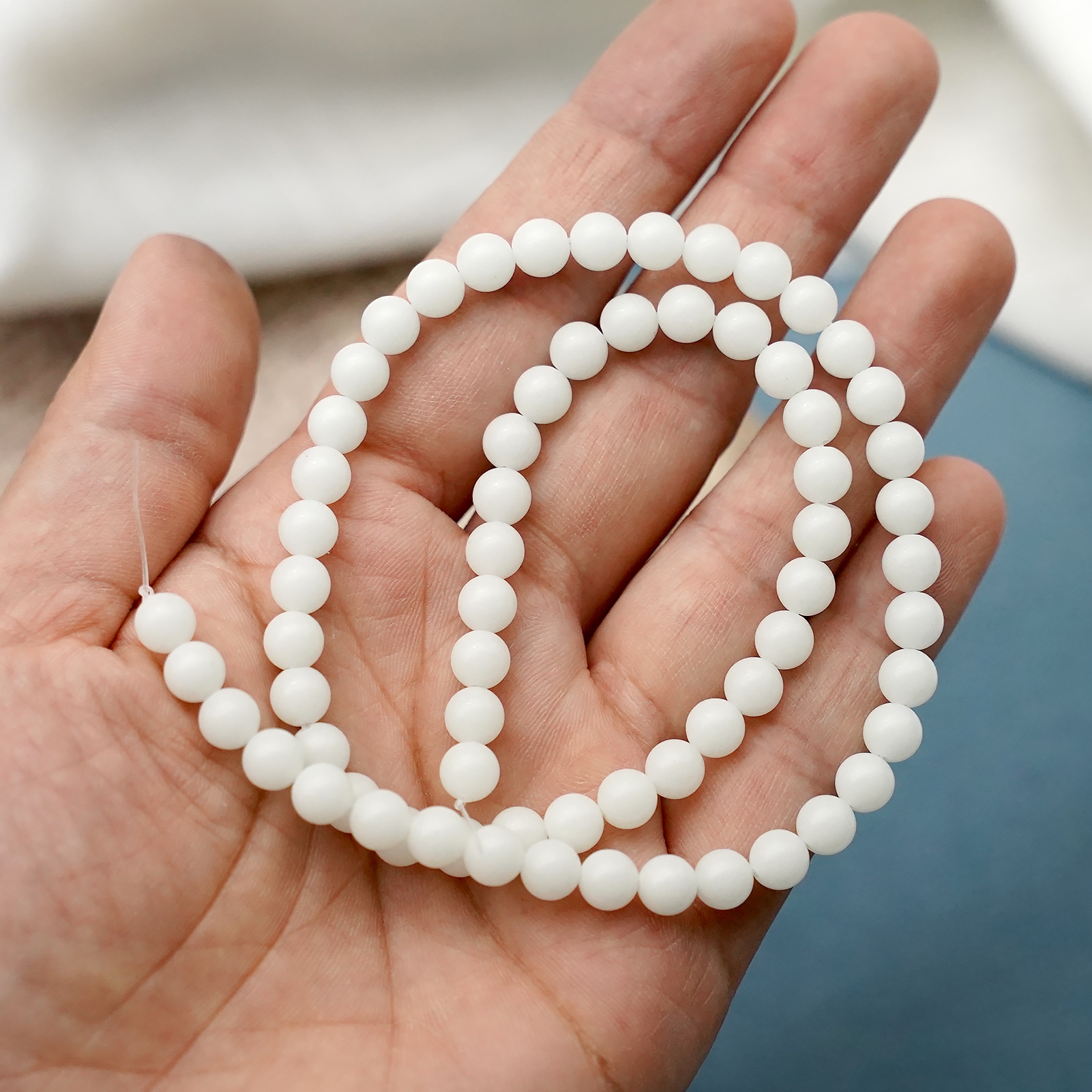DIY珠子-夜光珠-白色6mm(1条约60颗)