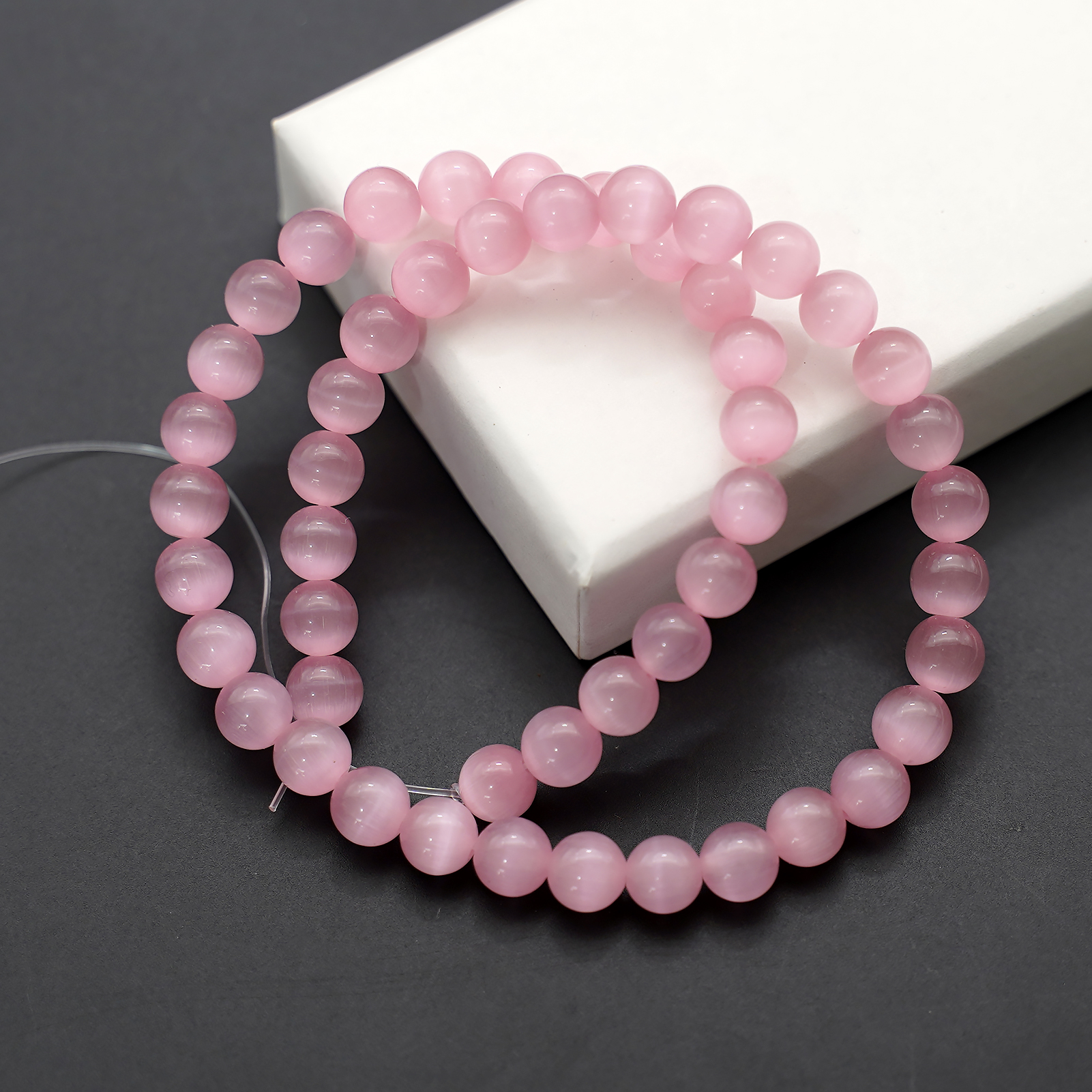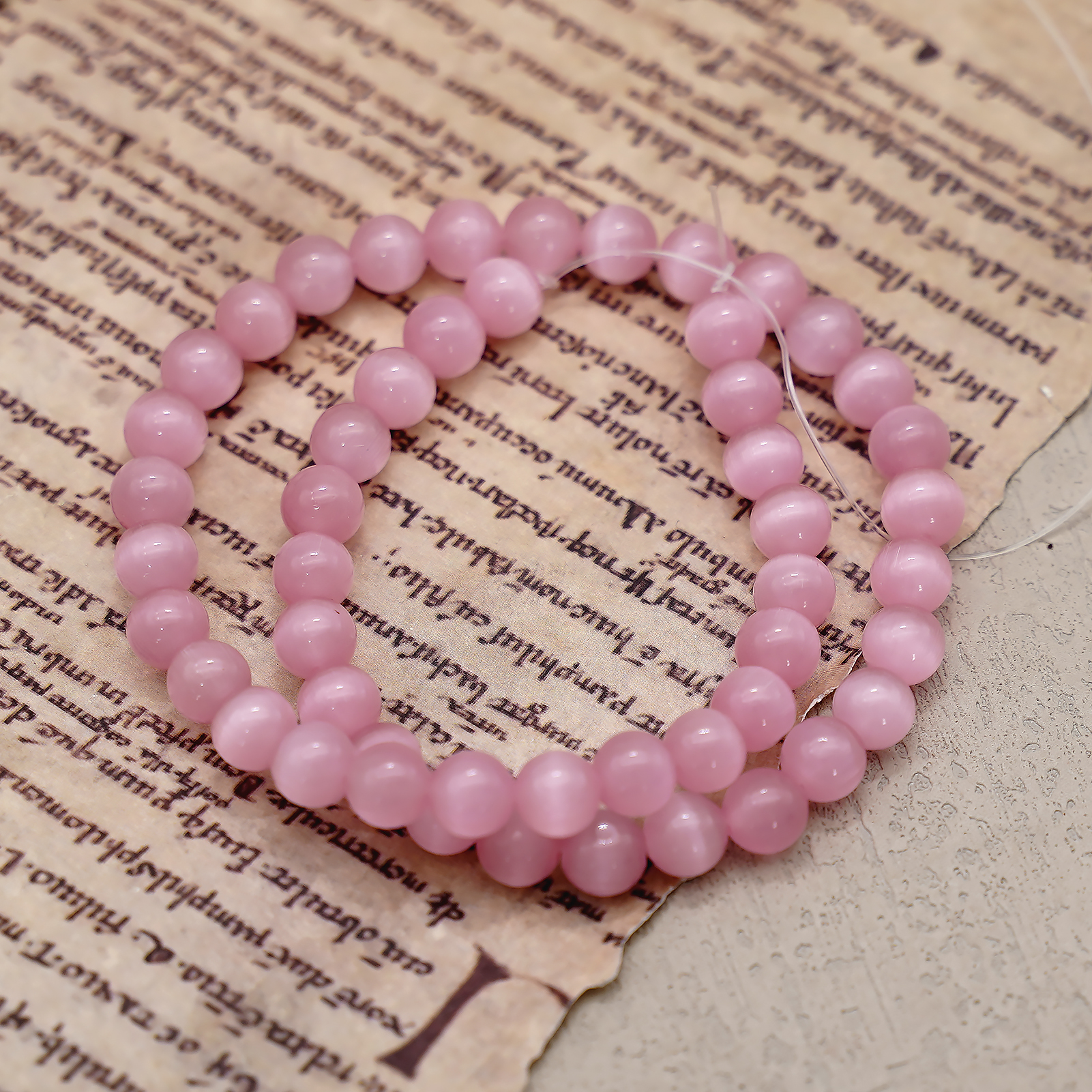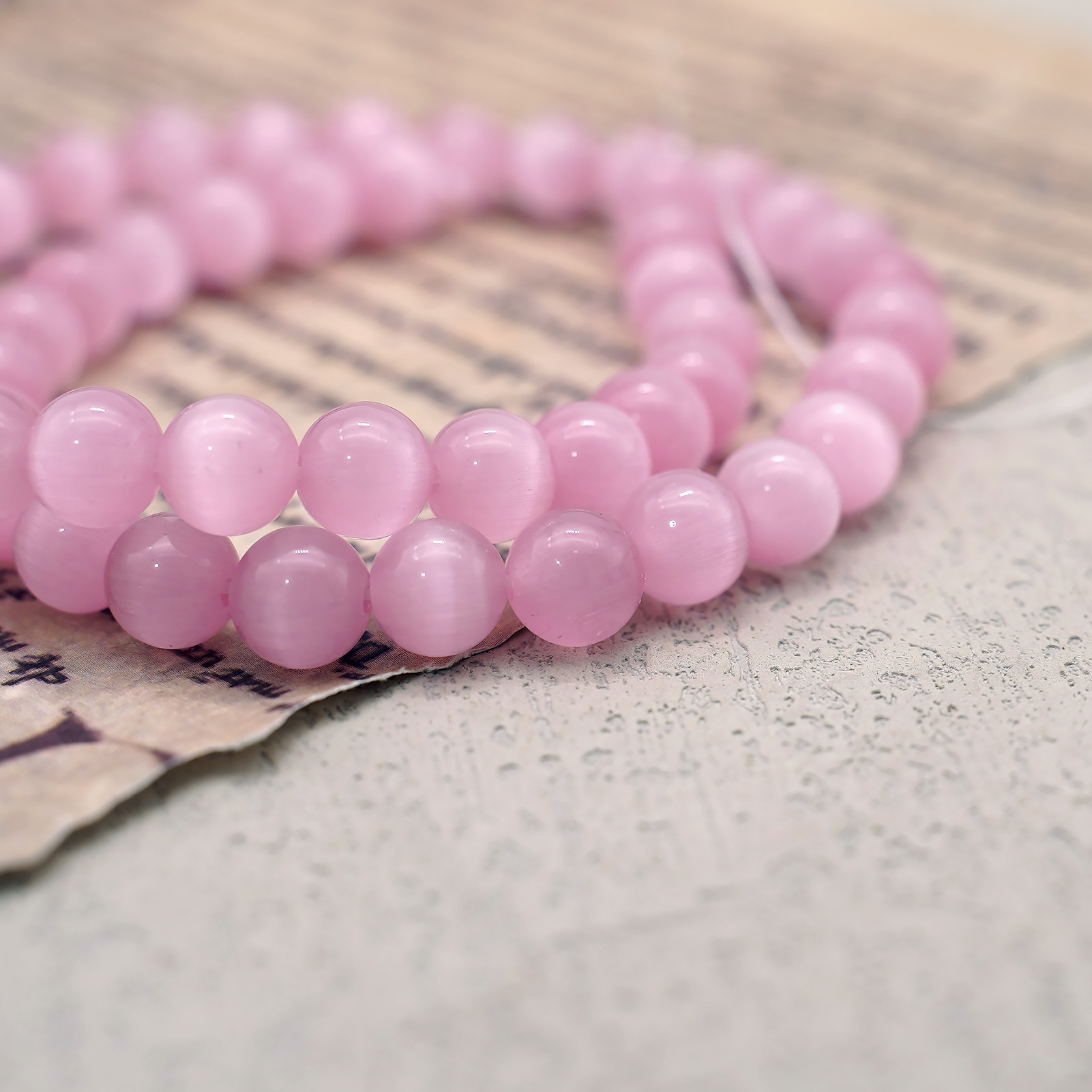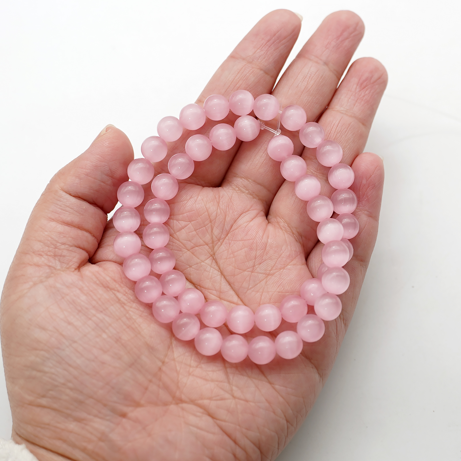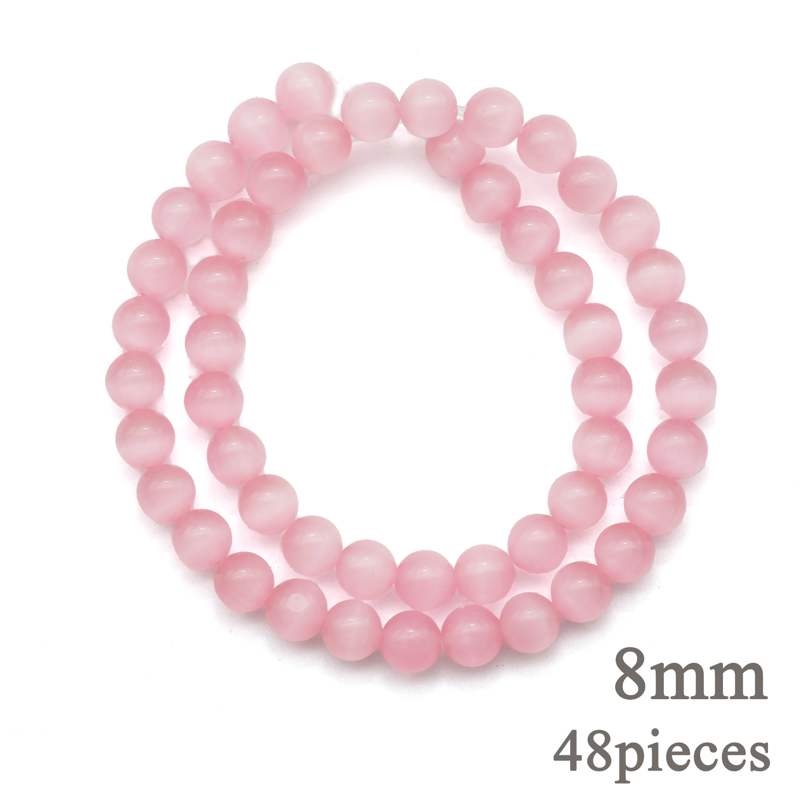 DIY珠子-桃花粉猫眼8mm(1条约48颗)