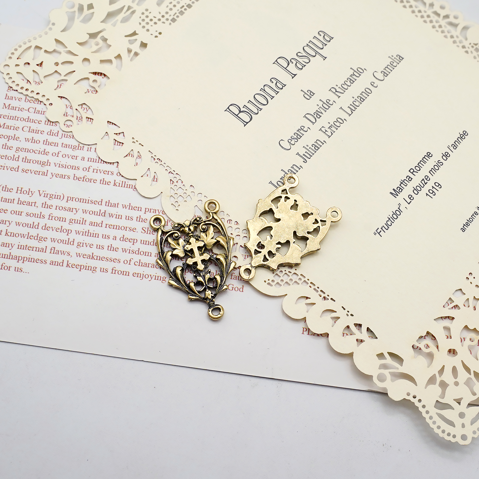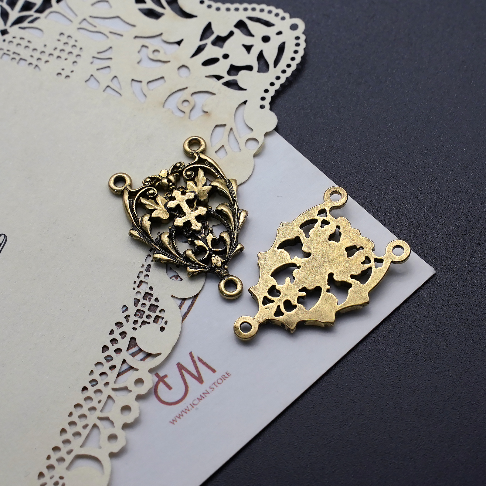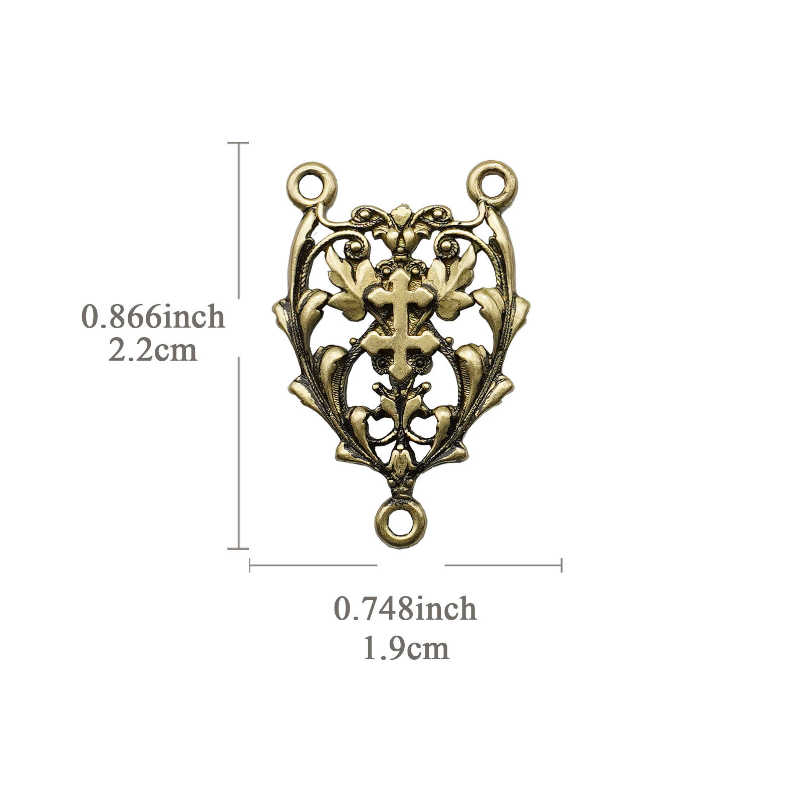 DIY三通-镂空花纹-黄铜做旧-2.2cm