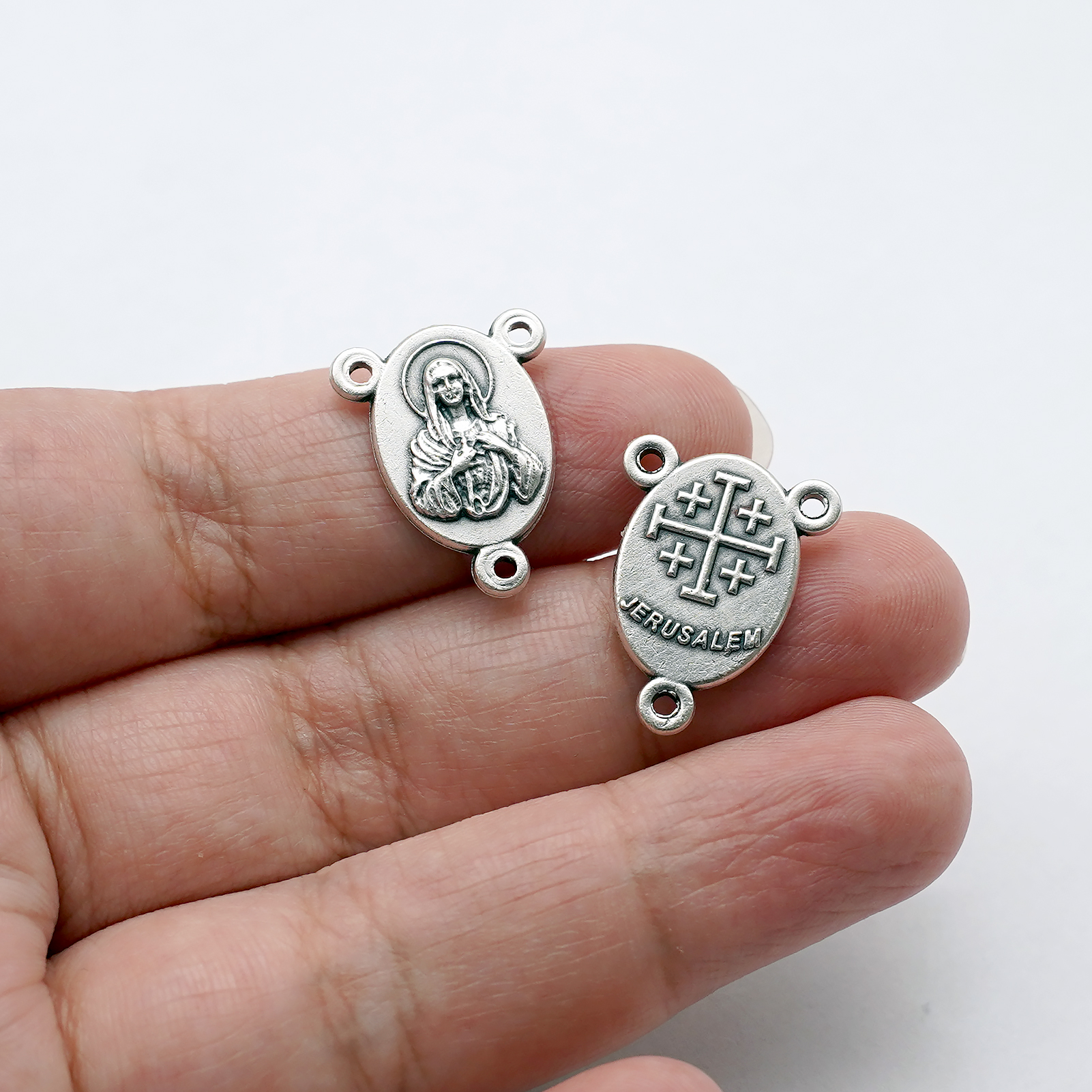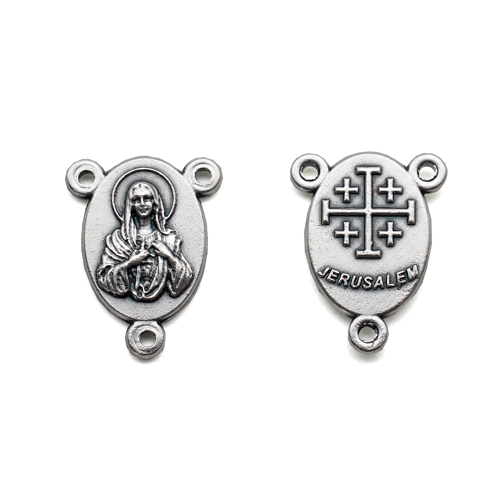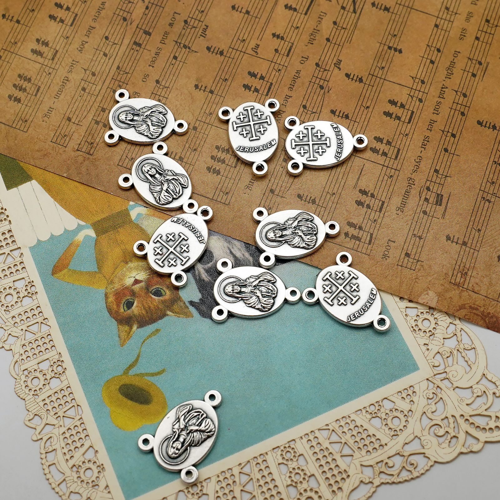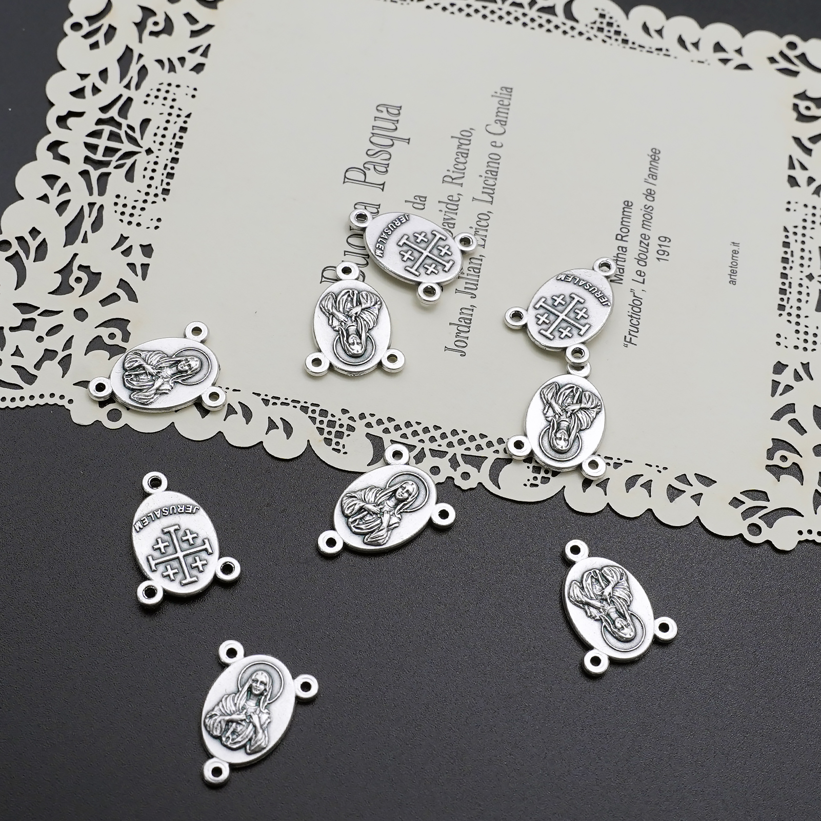DIY三通-圣母圣心+耶路撒冷十字架-锌合金-1.6×1.2cm