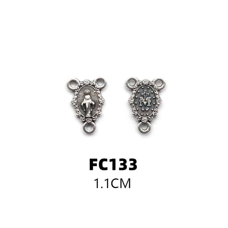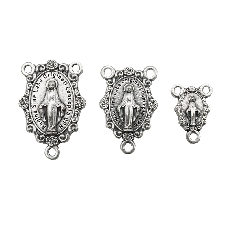 DIY三通-显灵圣母-椭圆带花饰-锌合金-1.0cm
