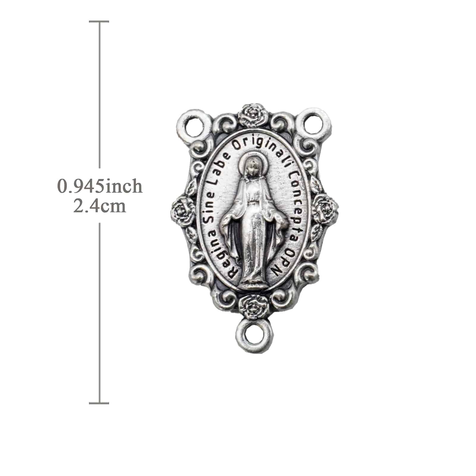 DIY三通-显灵圣母-椭圆带花饰-锌合金-2.4cm