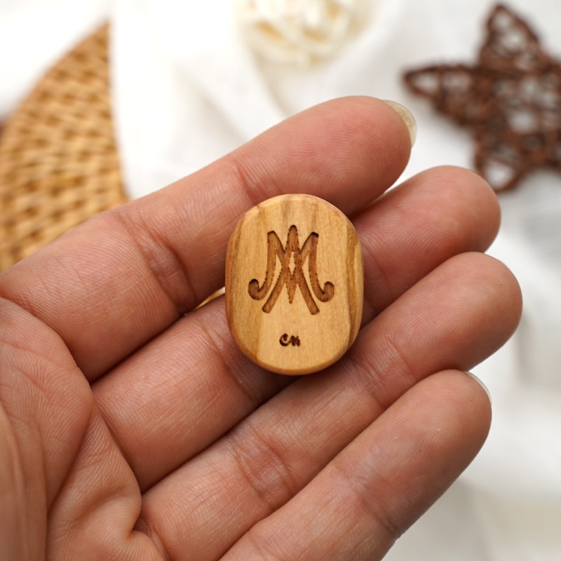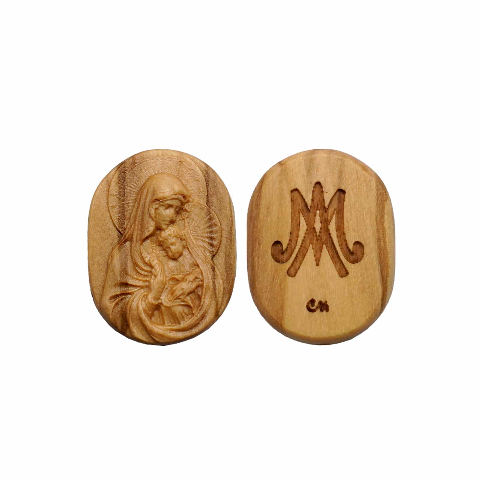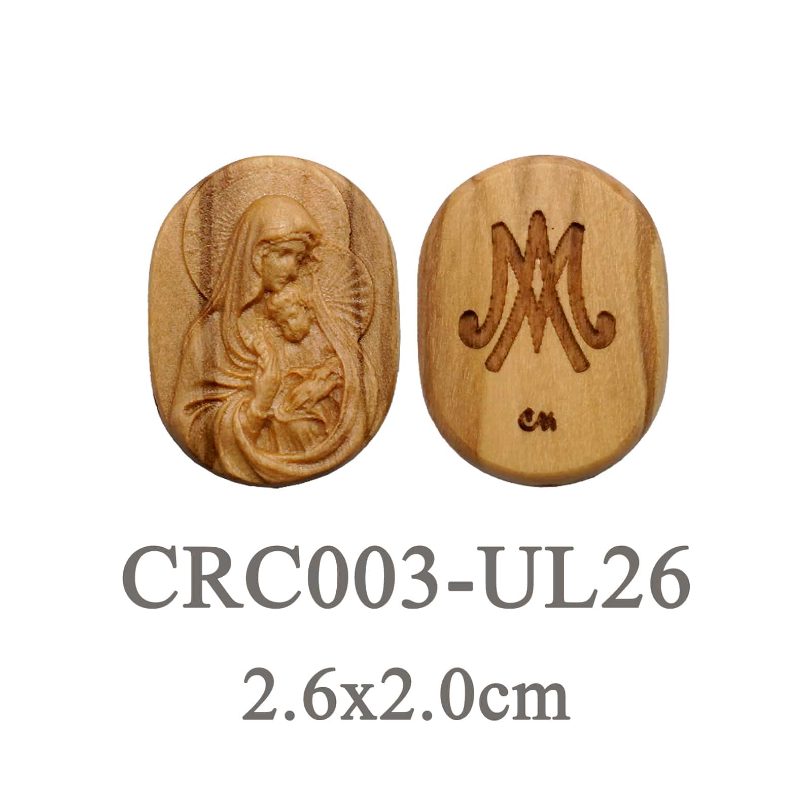 DIY双通-圣母抱耶稣-椭圆形-橄榄木-2.6cm