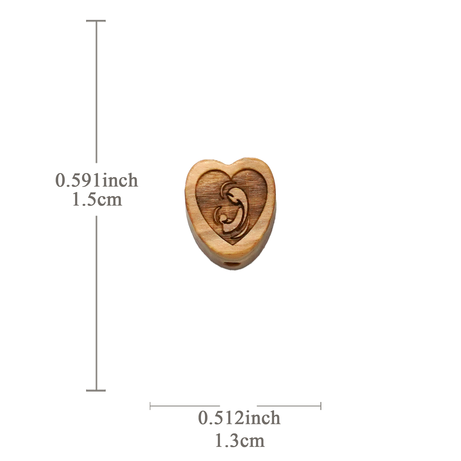 DIY三通-橄榄木-圣母抱耶稣-桃心-1.5cm