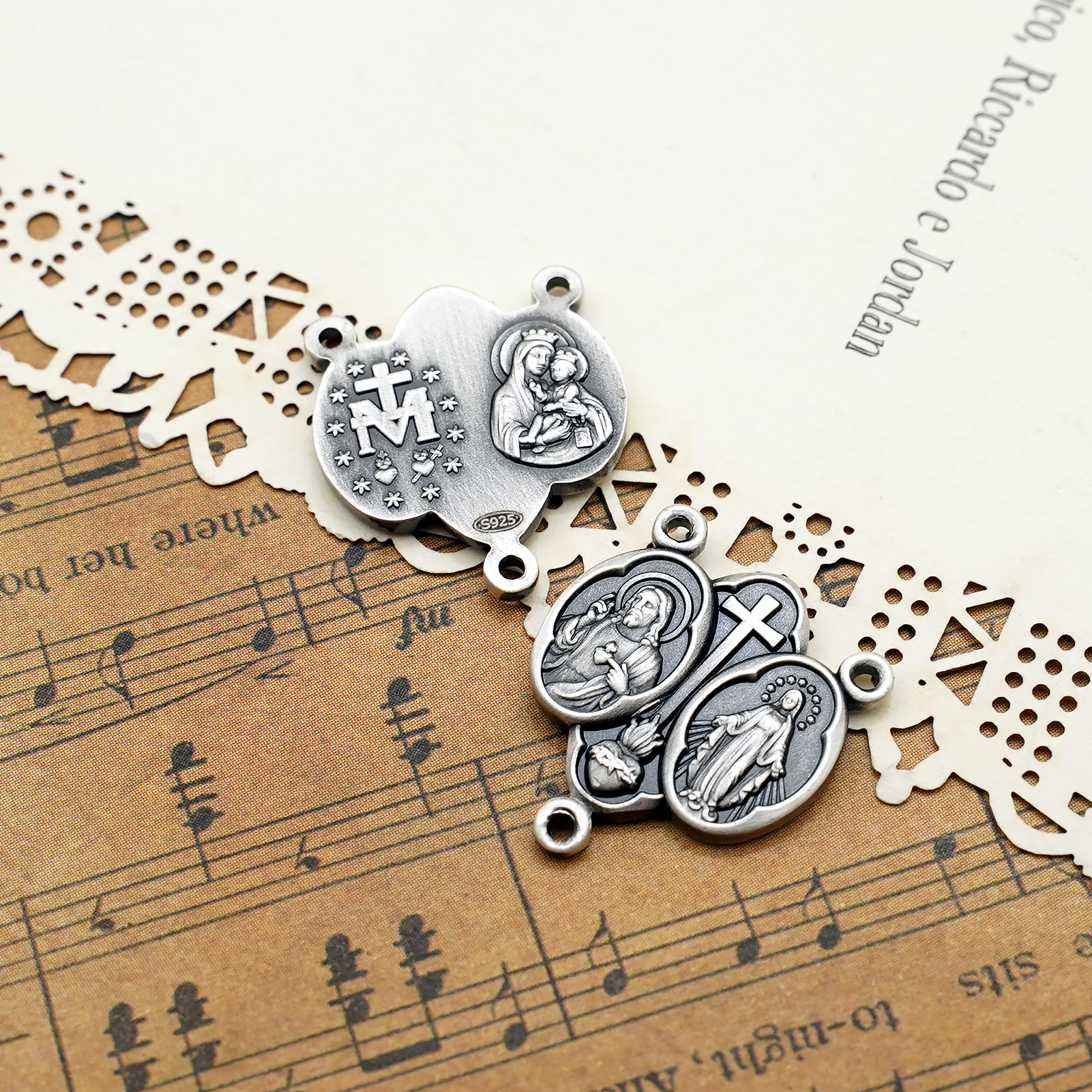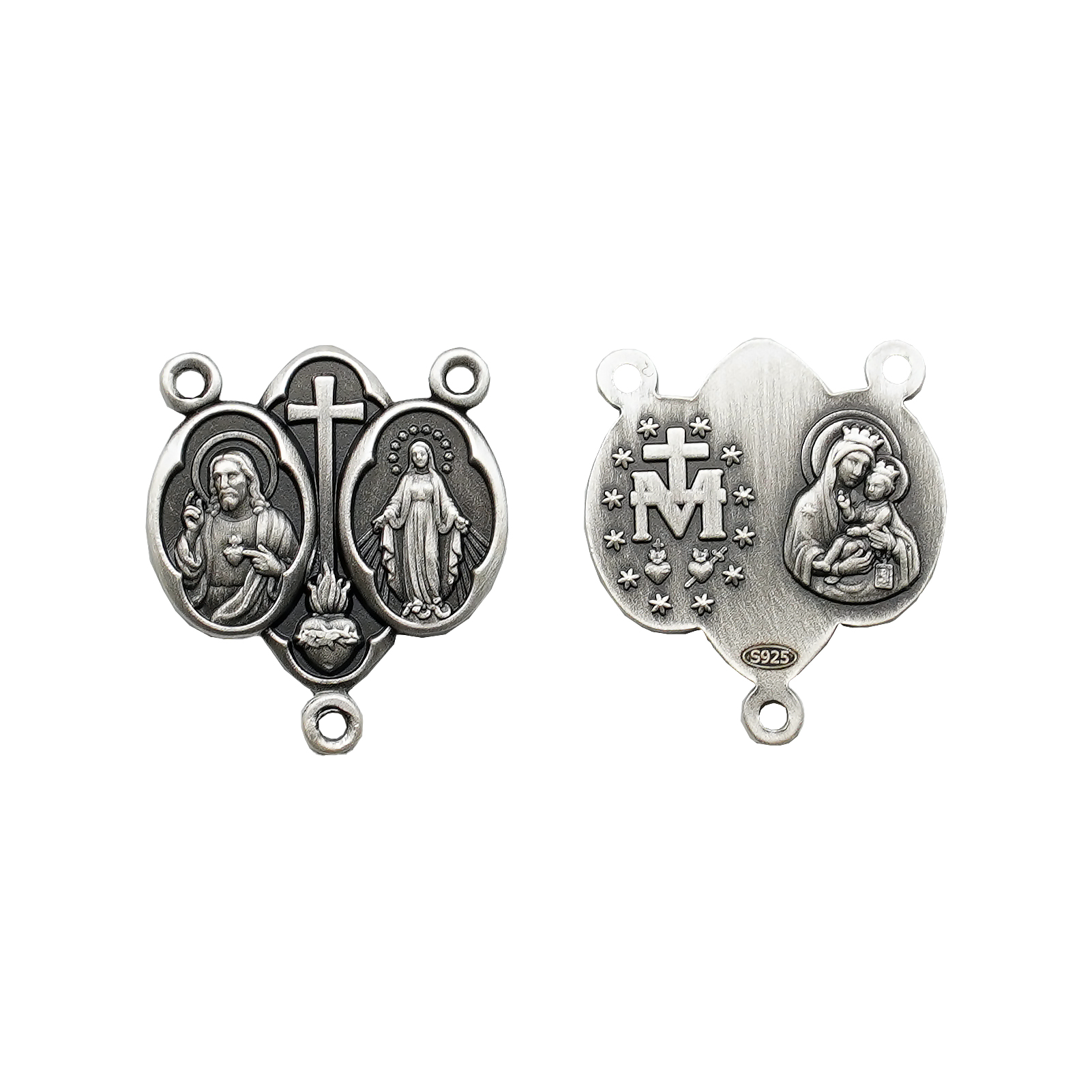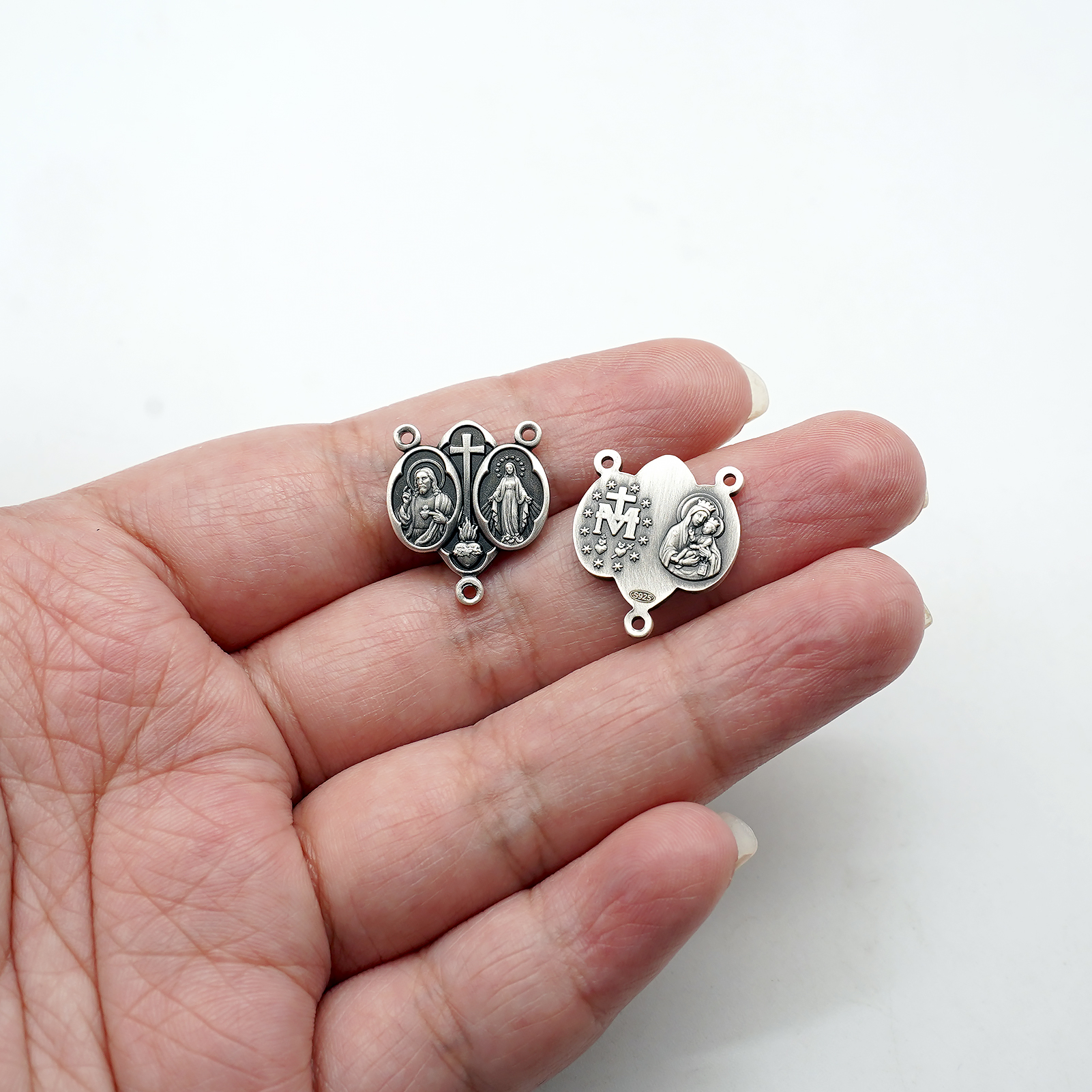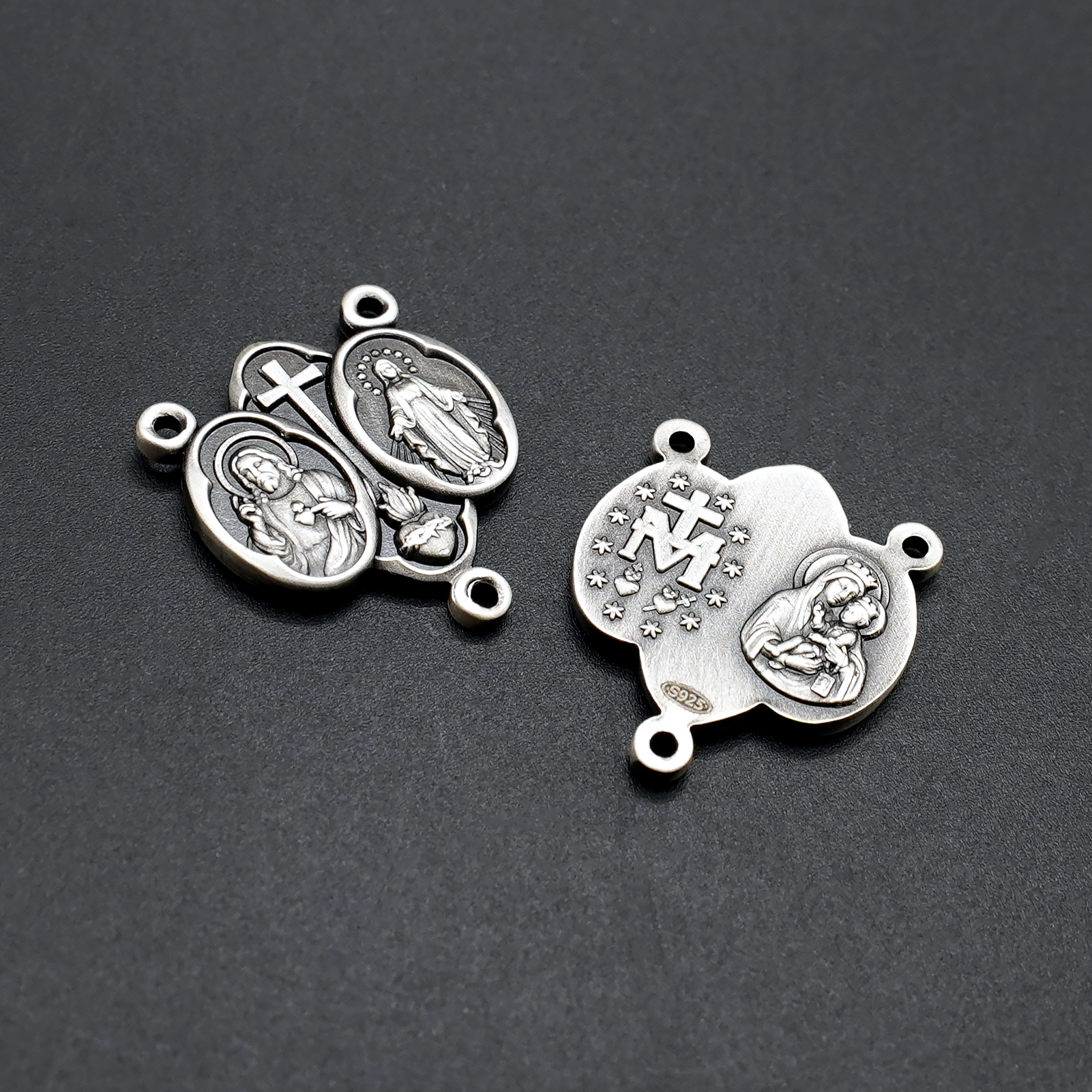 DIY三通-圣衣圣牌+显灵圣牌-(高清细节)925银做旧-1.5cm