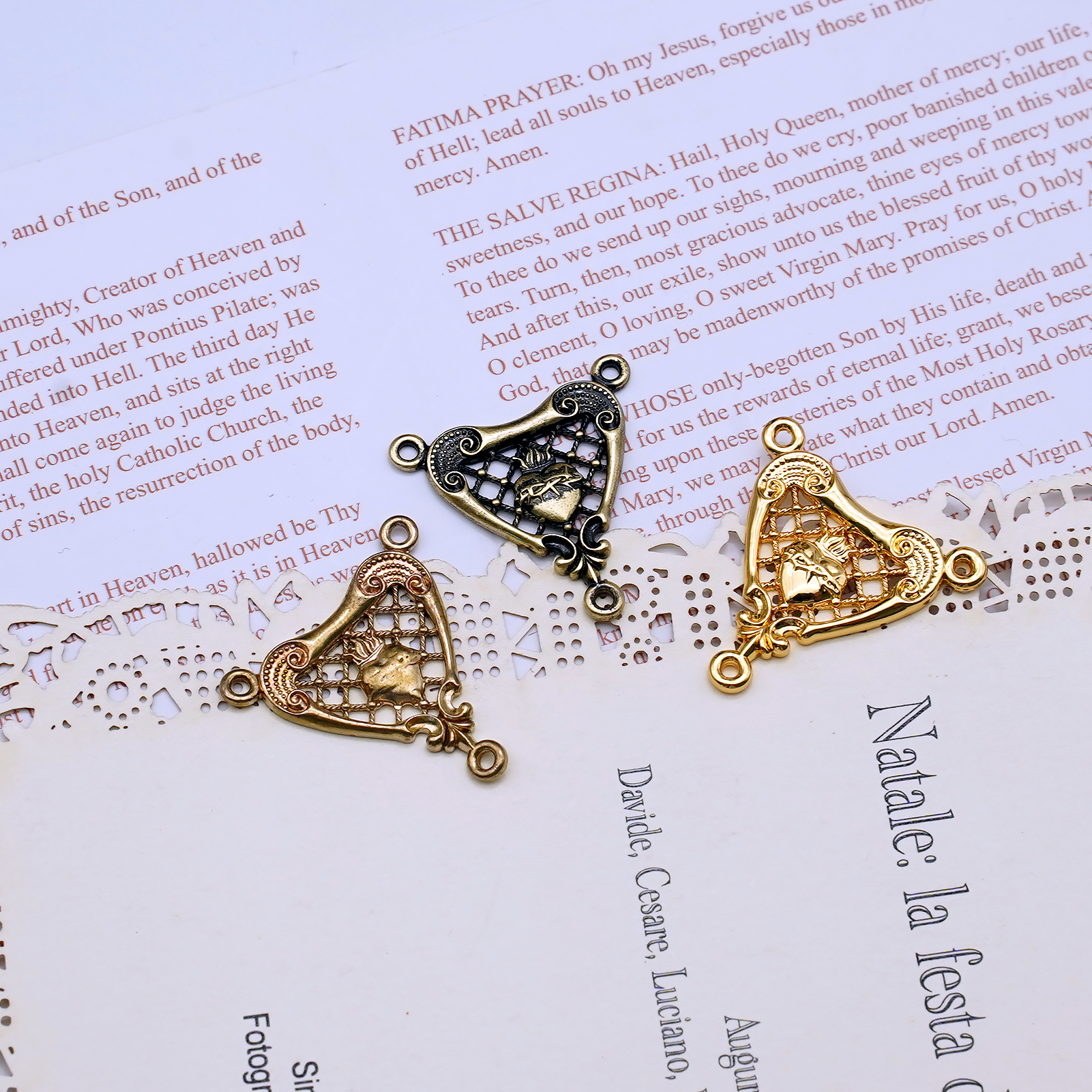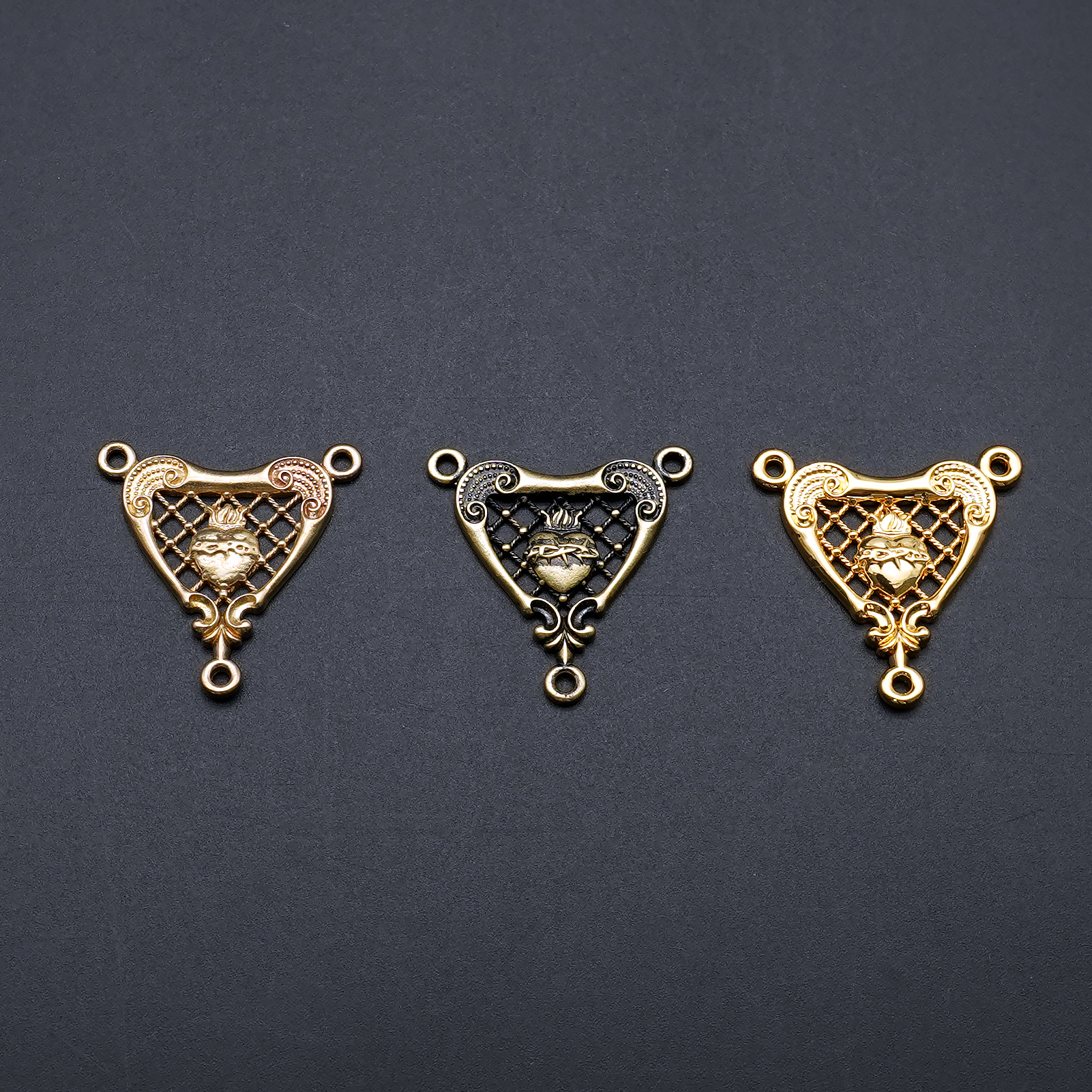 DIY三通-复古镂空圣心-黄铜-1.8cm