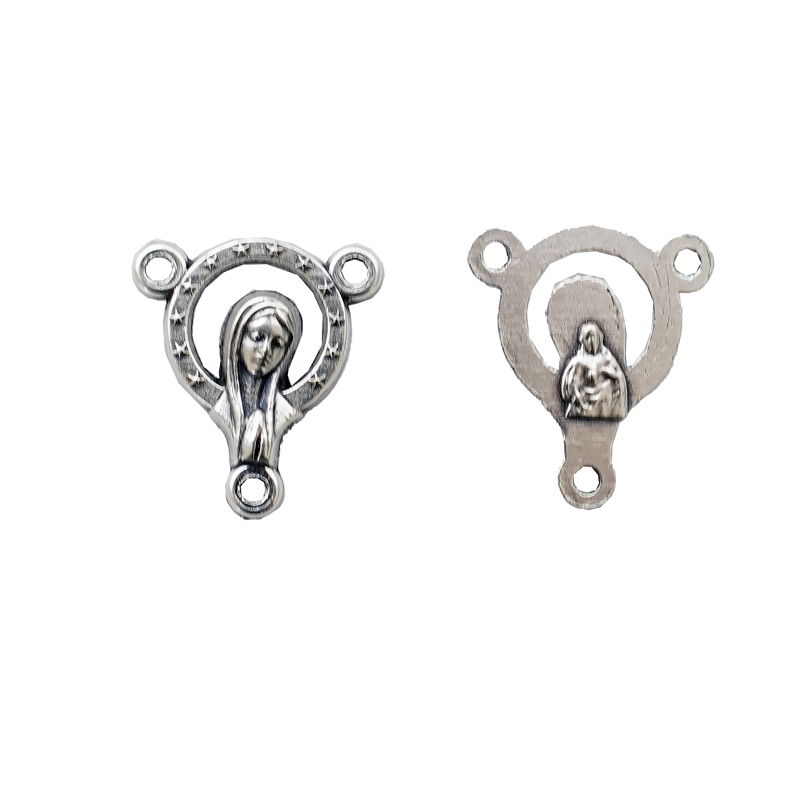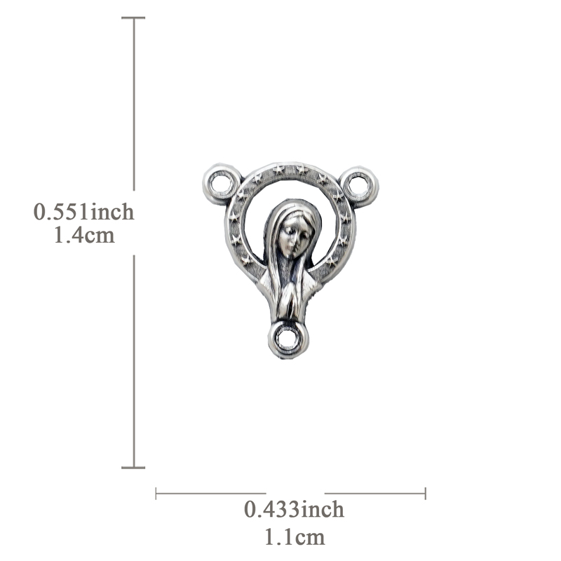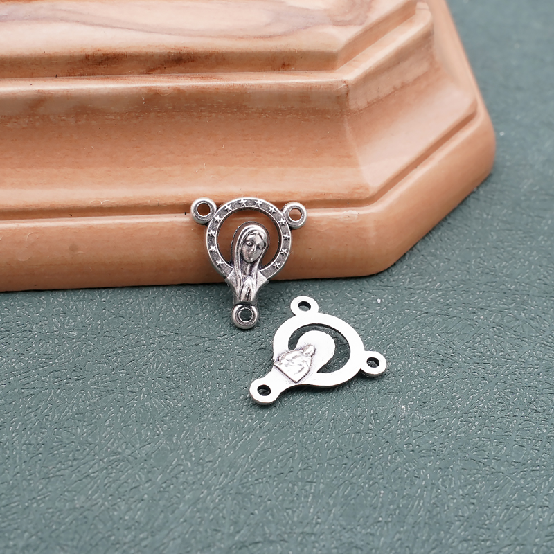 DIY三通-圣母+耶稣圣心-锌合金-银色-1.4cm