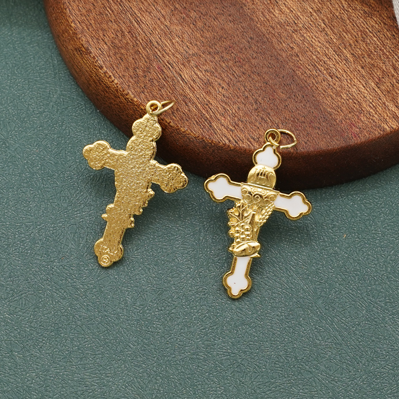 DIY十字架-圣体-锌合金-金色白珐琅-3.7cm