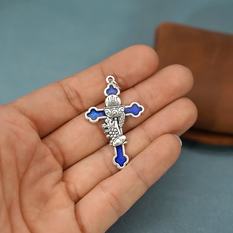 DIY十字架-圣体圣事+锌合金蓝珐琅-3.8×2.6cm