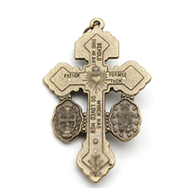 DIY十字架-宽恕+显灵圣母+圣本笃-锌合金-古铜色-5.5cm