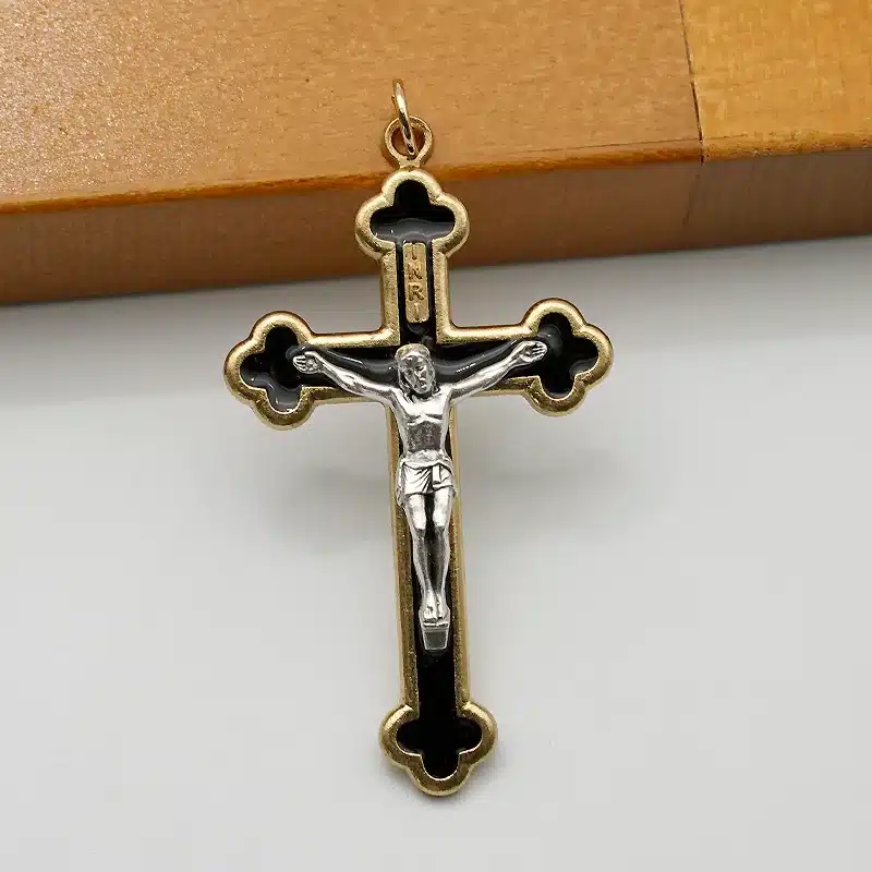 DIY十字架-金黑-锌合金-金色-黑珐琅-5.5cm