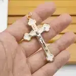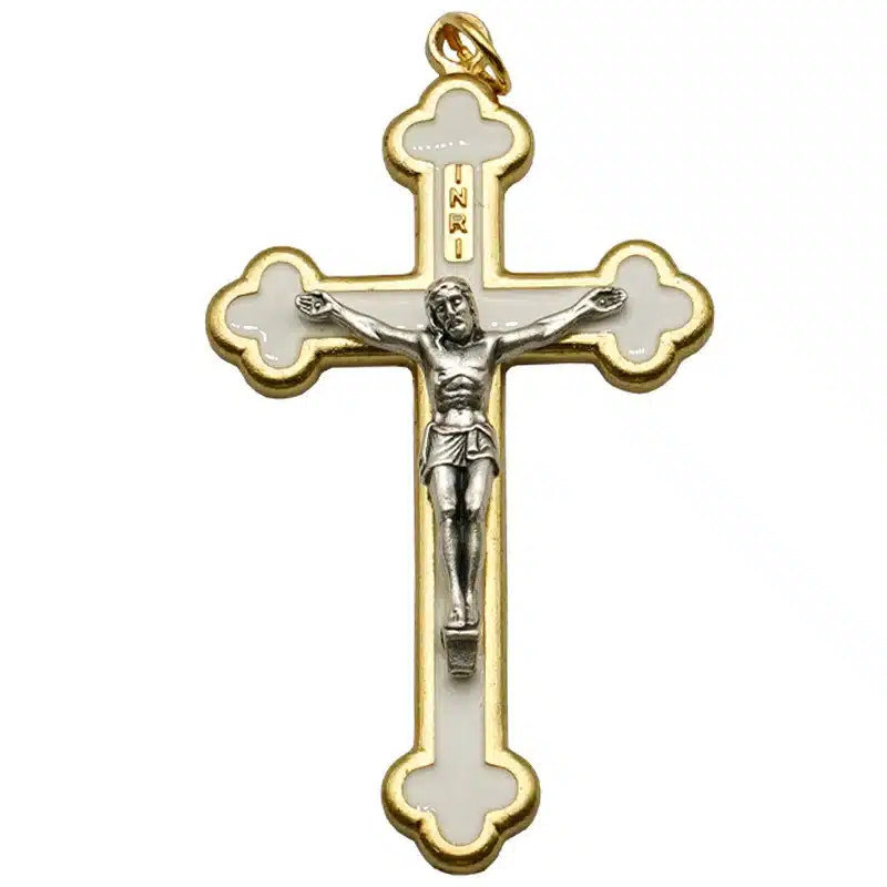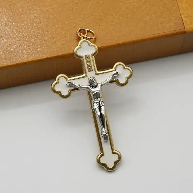 DIY十字架-金白-锌合金-金色-白珐琅-5.5cm
