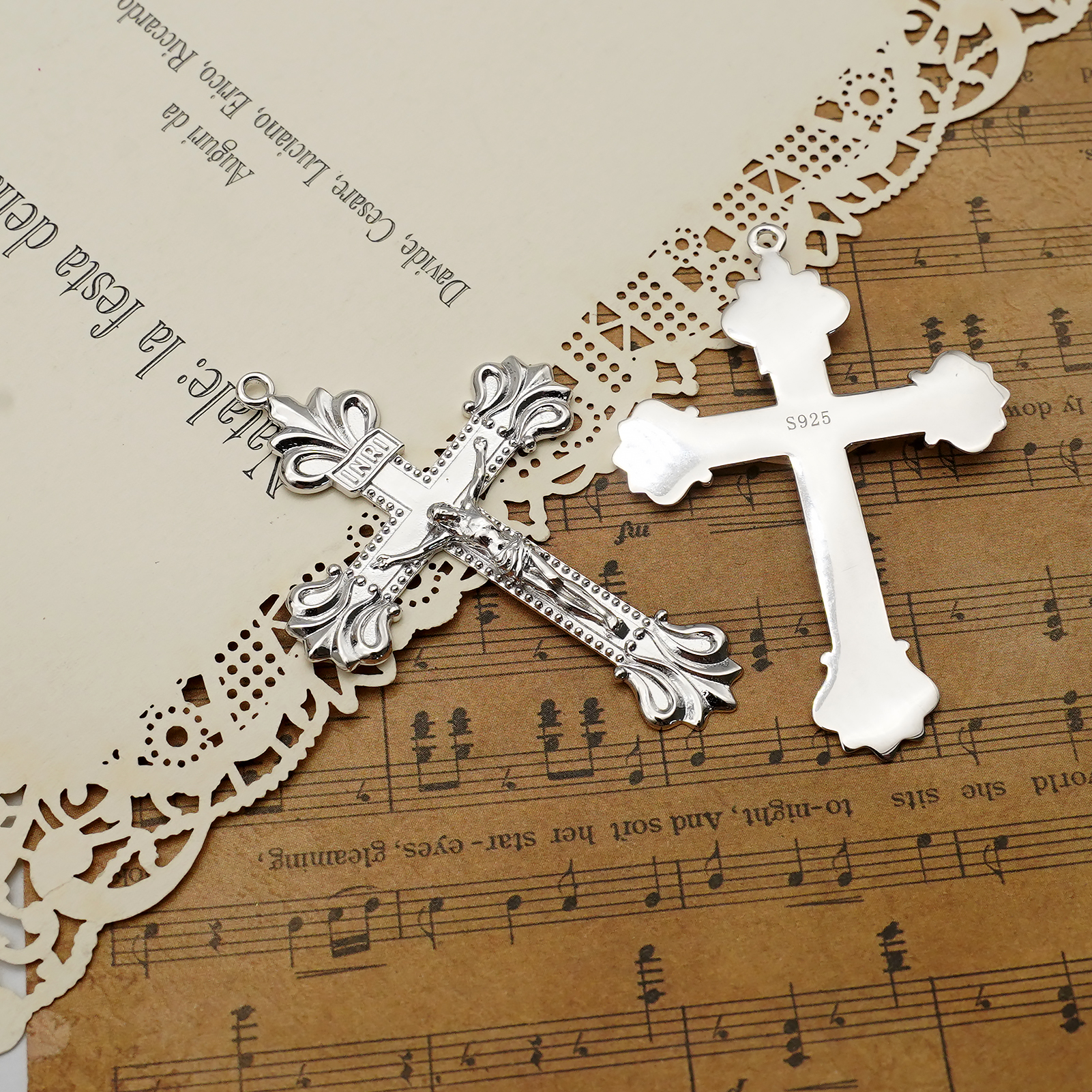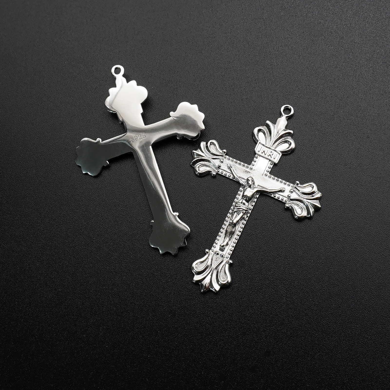 DIY十字架-复古十字架-925银亮白-4.8×3.4cm(不含链子)