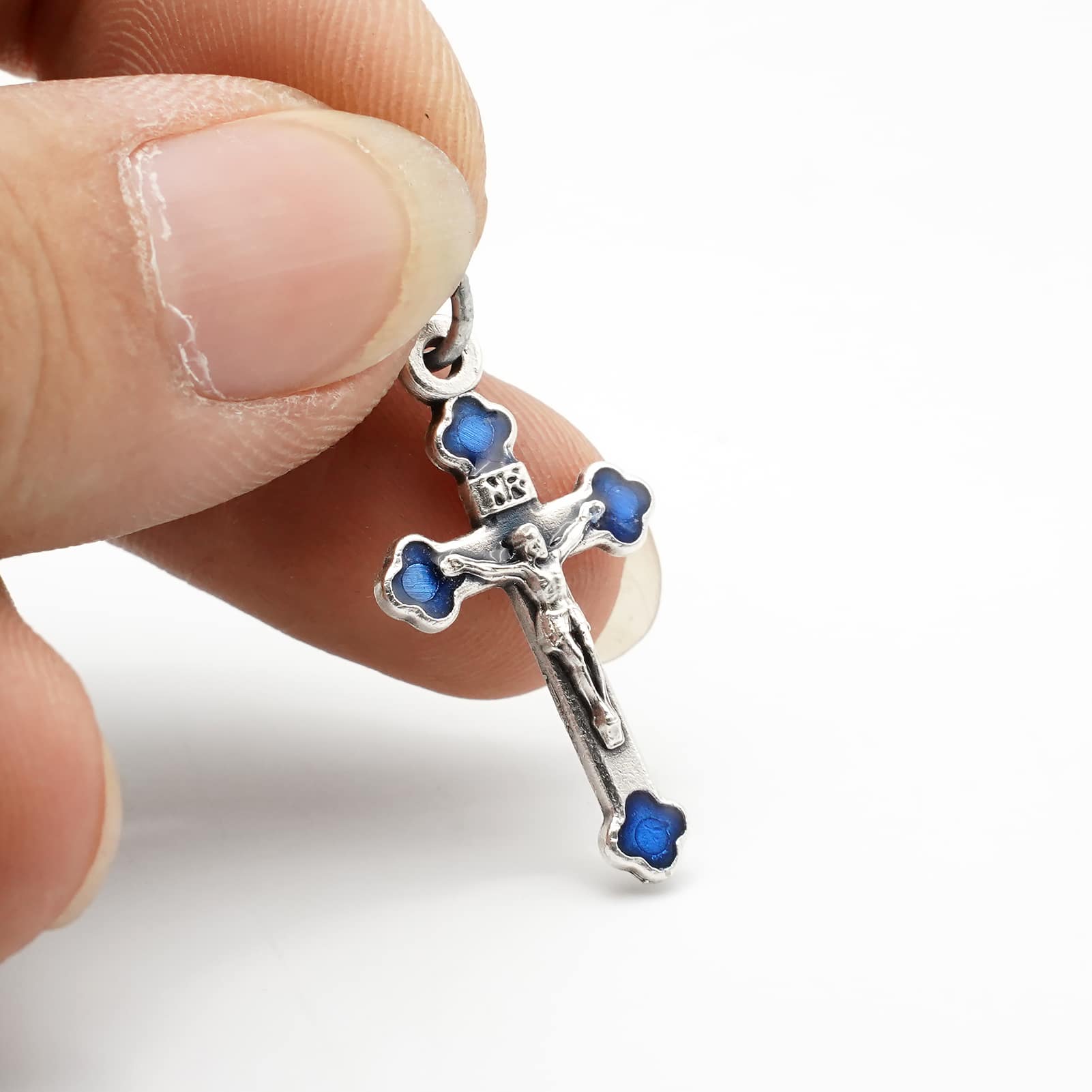 DIY十字架-银色合金+蓝色珐琅彩-2.3cm