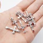 DIY十字架-银色合金+红色珐琅彩2.3cm