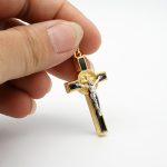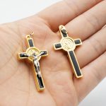 DIY十字架-金色合金+黑色珐琅彩圣本笃-3.5×2.1cm
