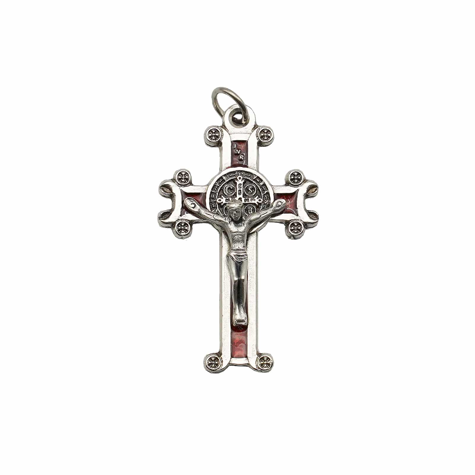 DIY十字架-圣本笃-镀银合金-红珐琅-4×2.5cm