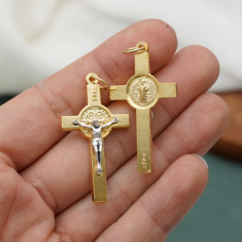 DIY十字架-圣本笃-锌合金-金色-3.5cm