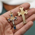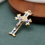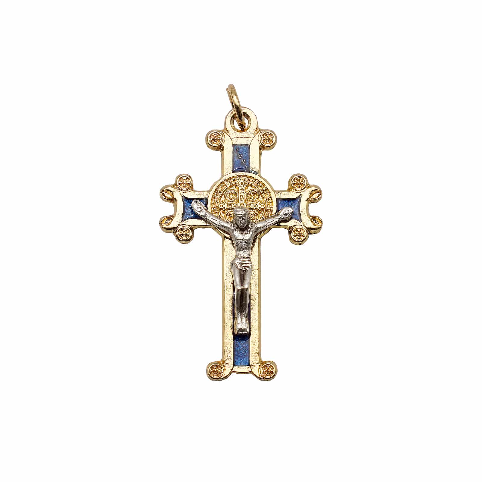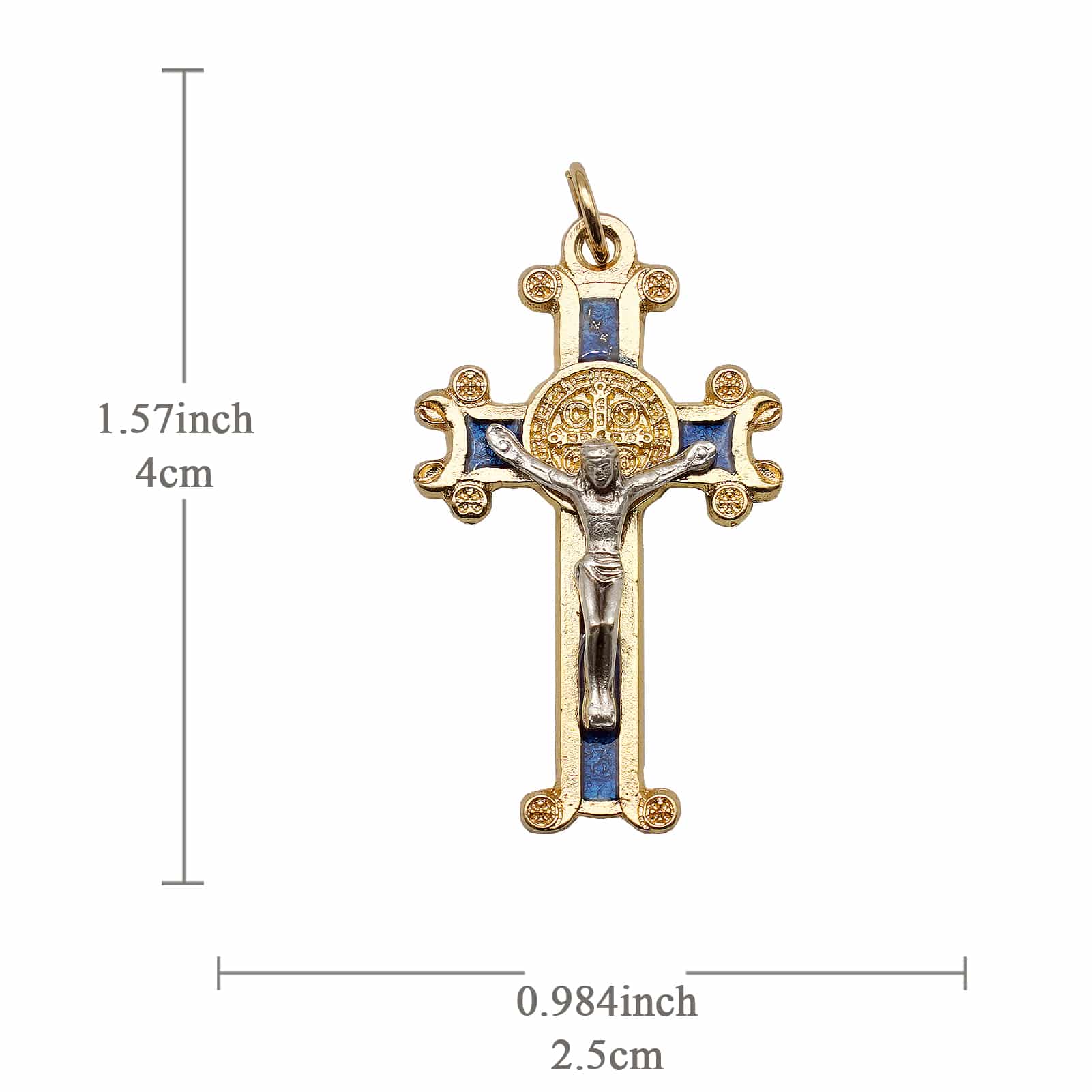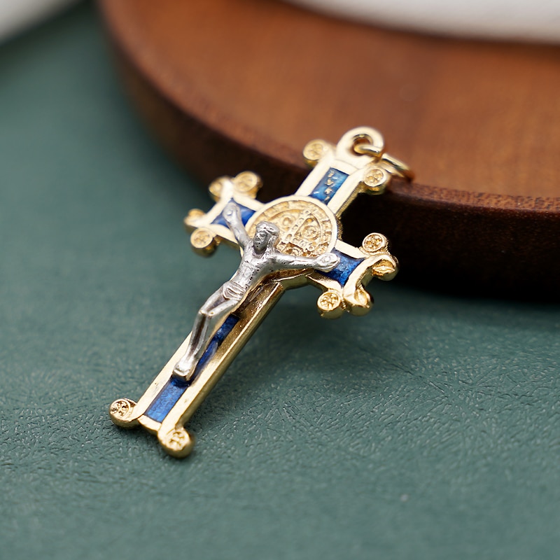 DIY十字架-圣本笃-锌合金-金色-蓝珐琅-4×2.5cm