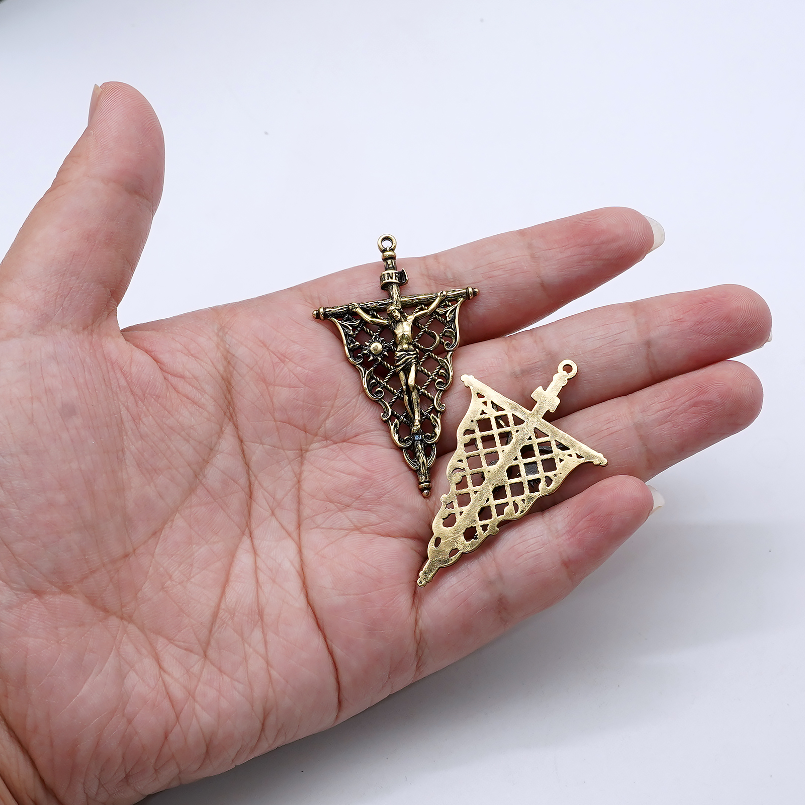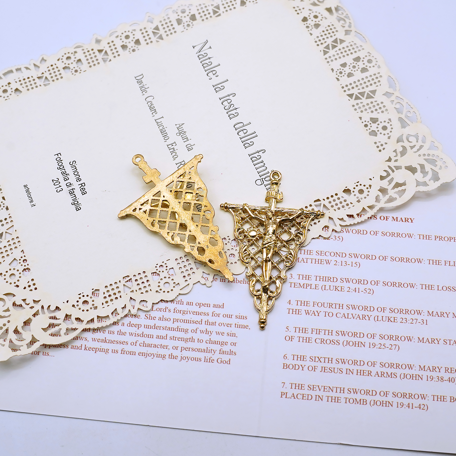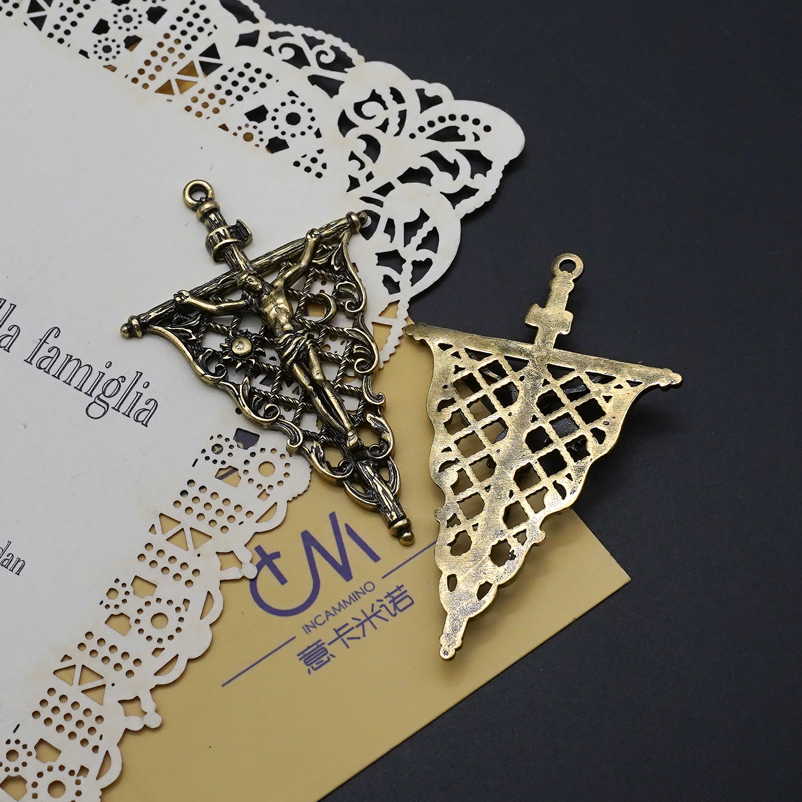 DIY十字架-复古镂空-黄铜-4.1×3.1cm