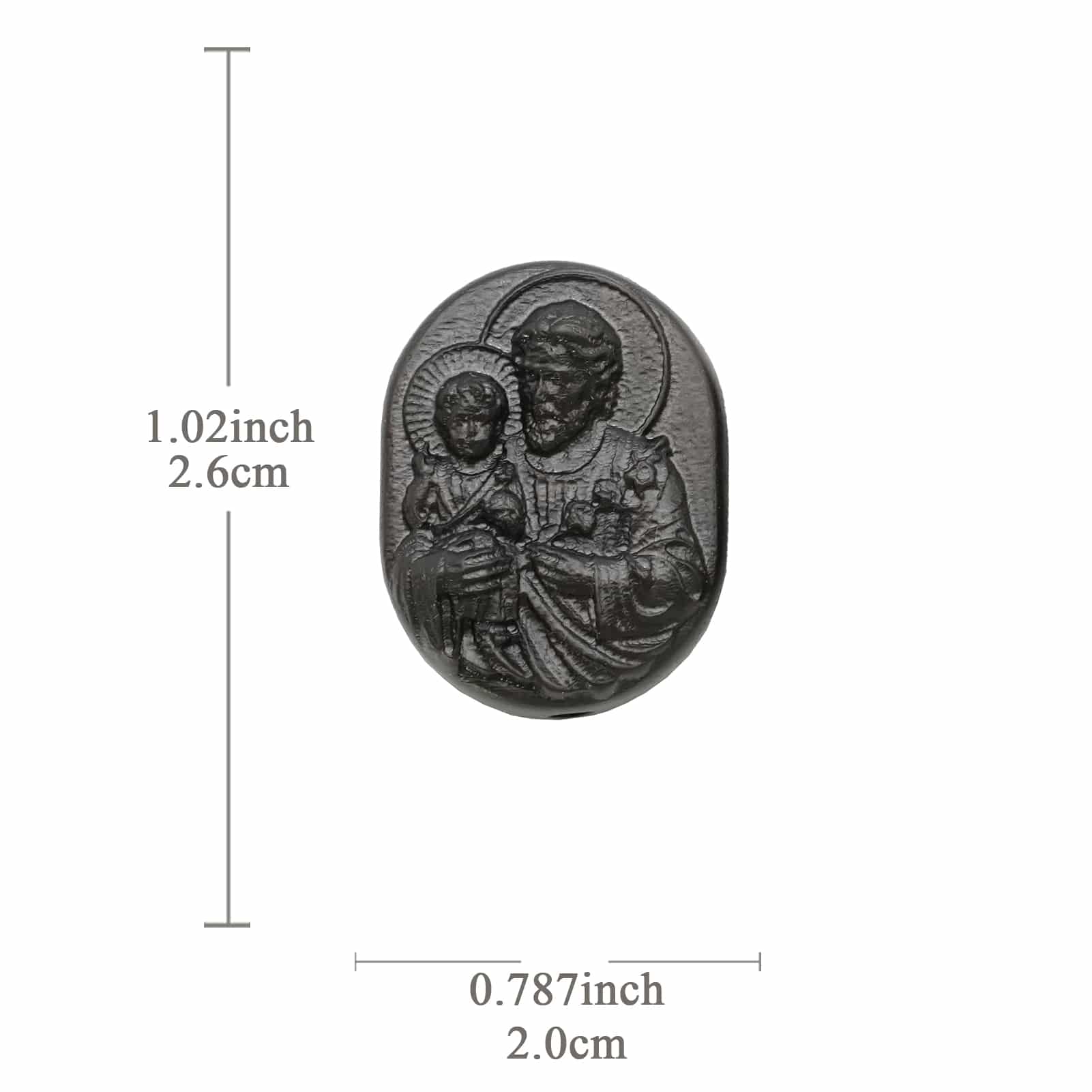 DIY双通-若瑟抱耶稣-椭圆形-黑檀木-2.6cm