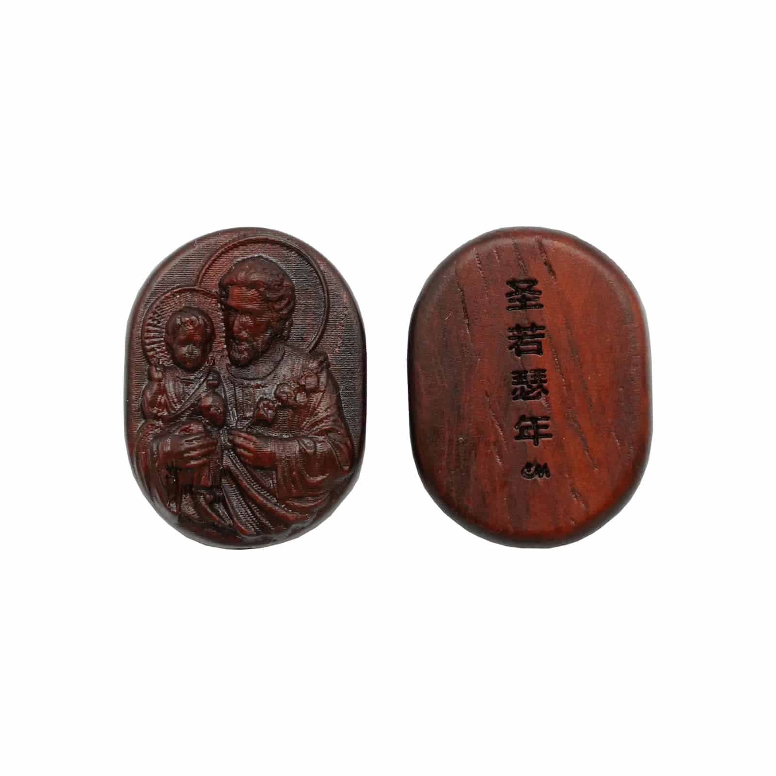 DIY双通-若瑟抱耶稣-椭圆形-紫檀木-2.6cm