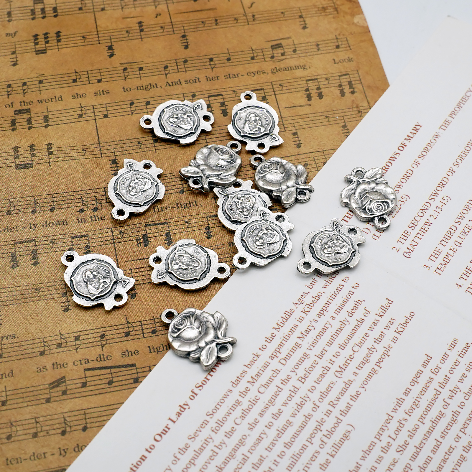DIY双通-玫瑰花天主经-若瑟抱耶稣-1.4cm