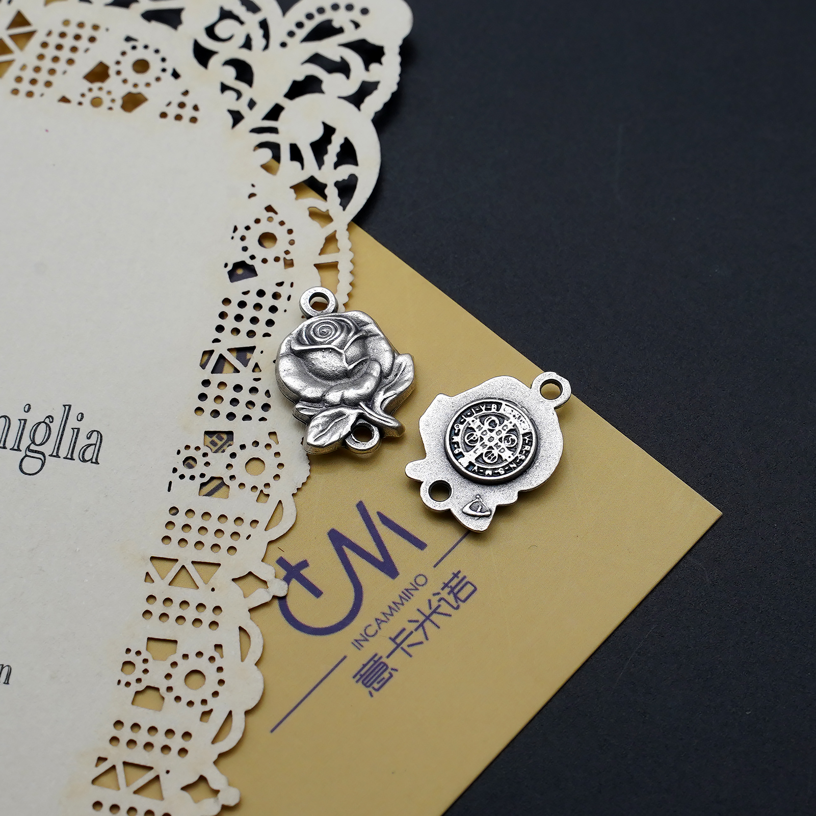 DIY双通-玫瑰花天主经-圣本笃-1.4cm