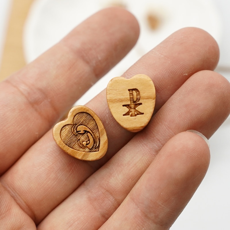 DIY双通-圣母抱耶稣-桃心-橄榄木-1.5cm