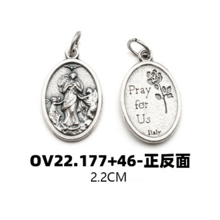 DIY小吊牌-解结圣母+玫瑰花-金色-锌合金-2.2cm