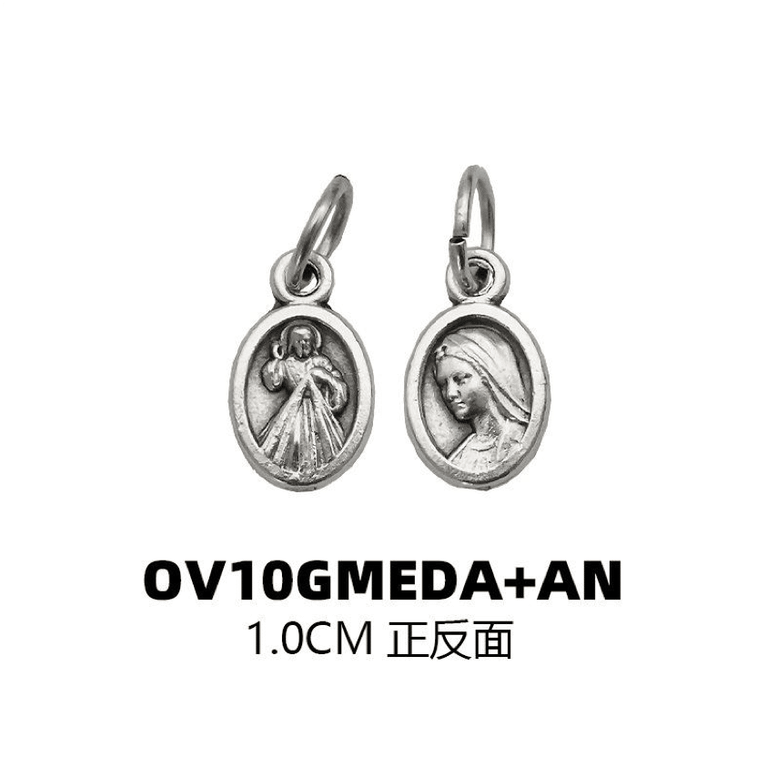 DIY小吊牌-椭圆圣母+上主慈悲-锌合金-1cm