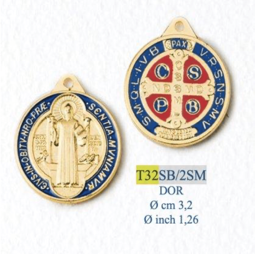 DIY小吊牌-本笃-锌合金-双面珐琅彩金色-3.2cm
