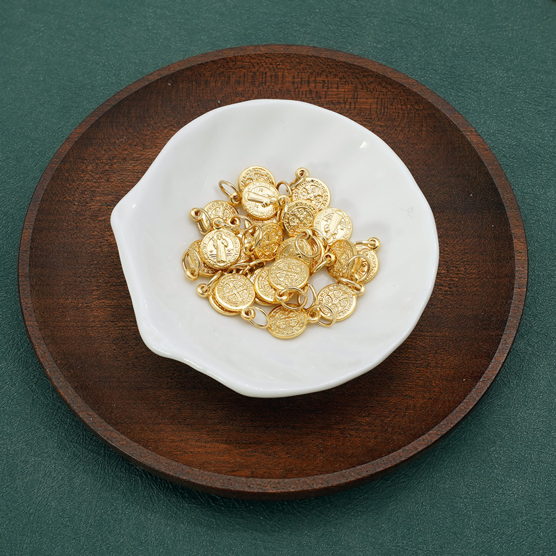 DIY小吊牌-圣本笃-锌合金-金色-0.9cm