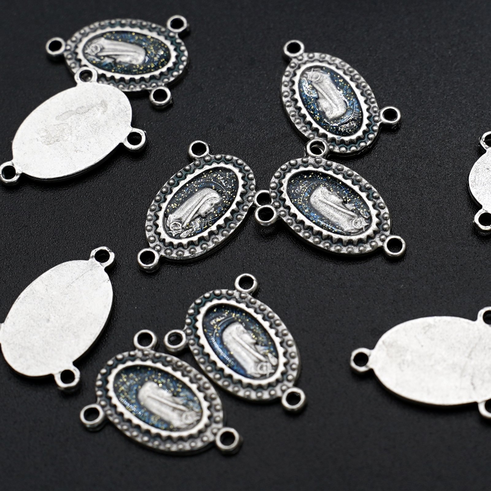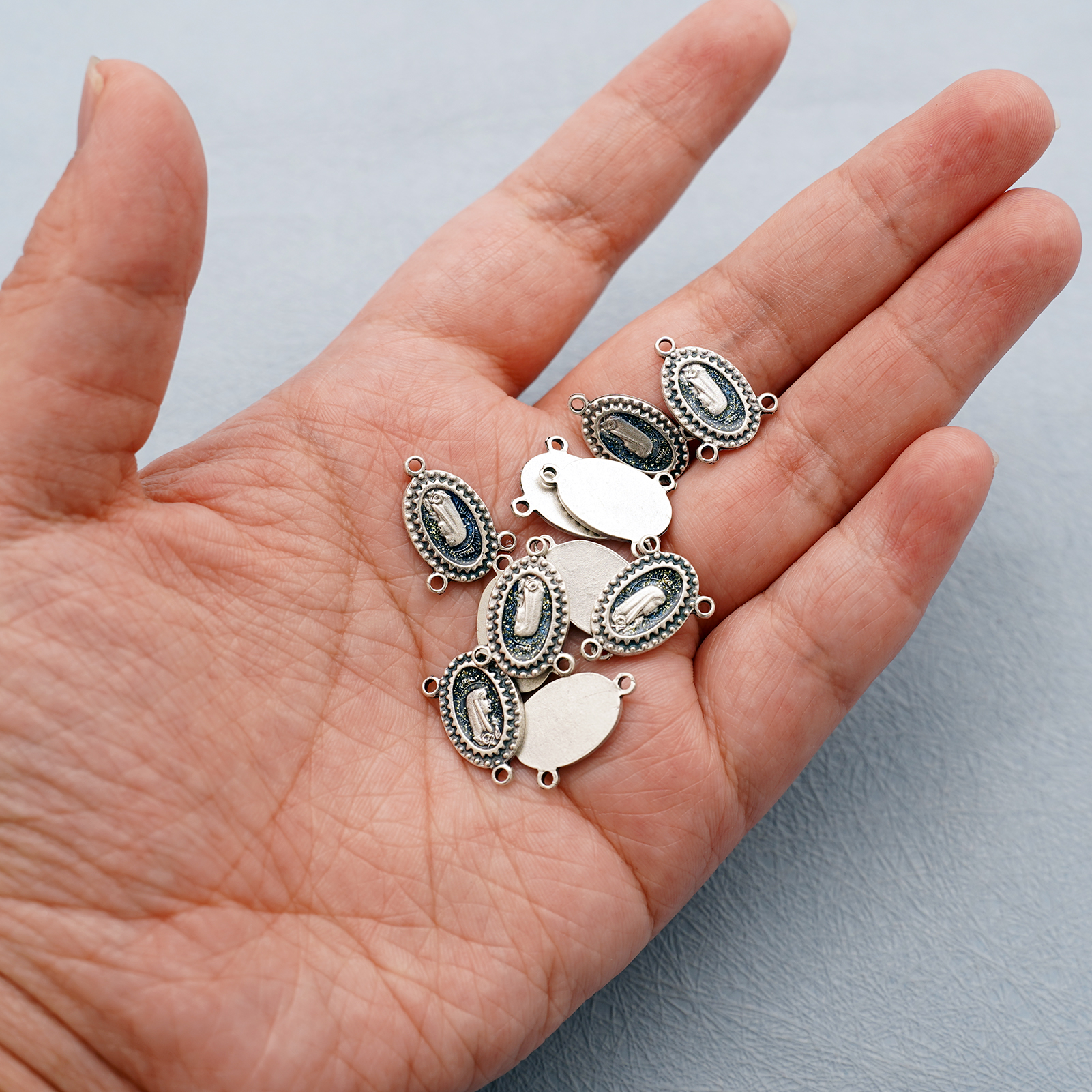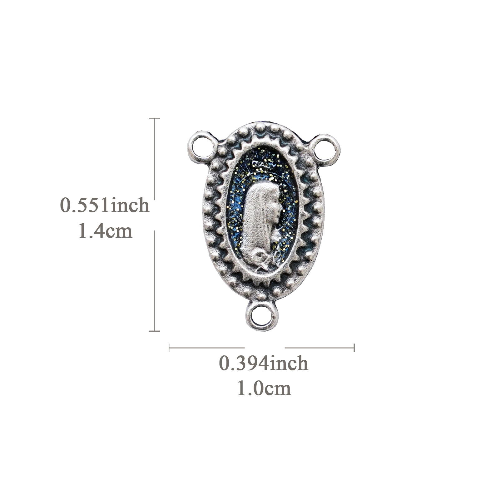 DIY三通-圣母-锌合金-蓝色-1.4x1cm