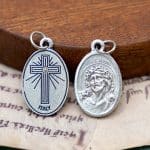 DIY小吊牌-耶稣头像+十字架-锌合金-镀银-2.2cm