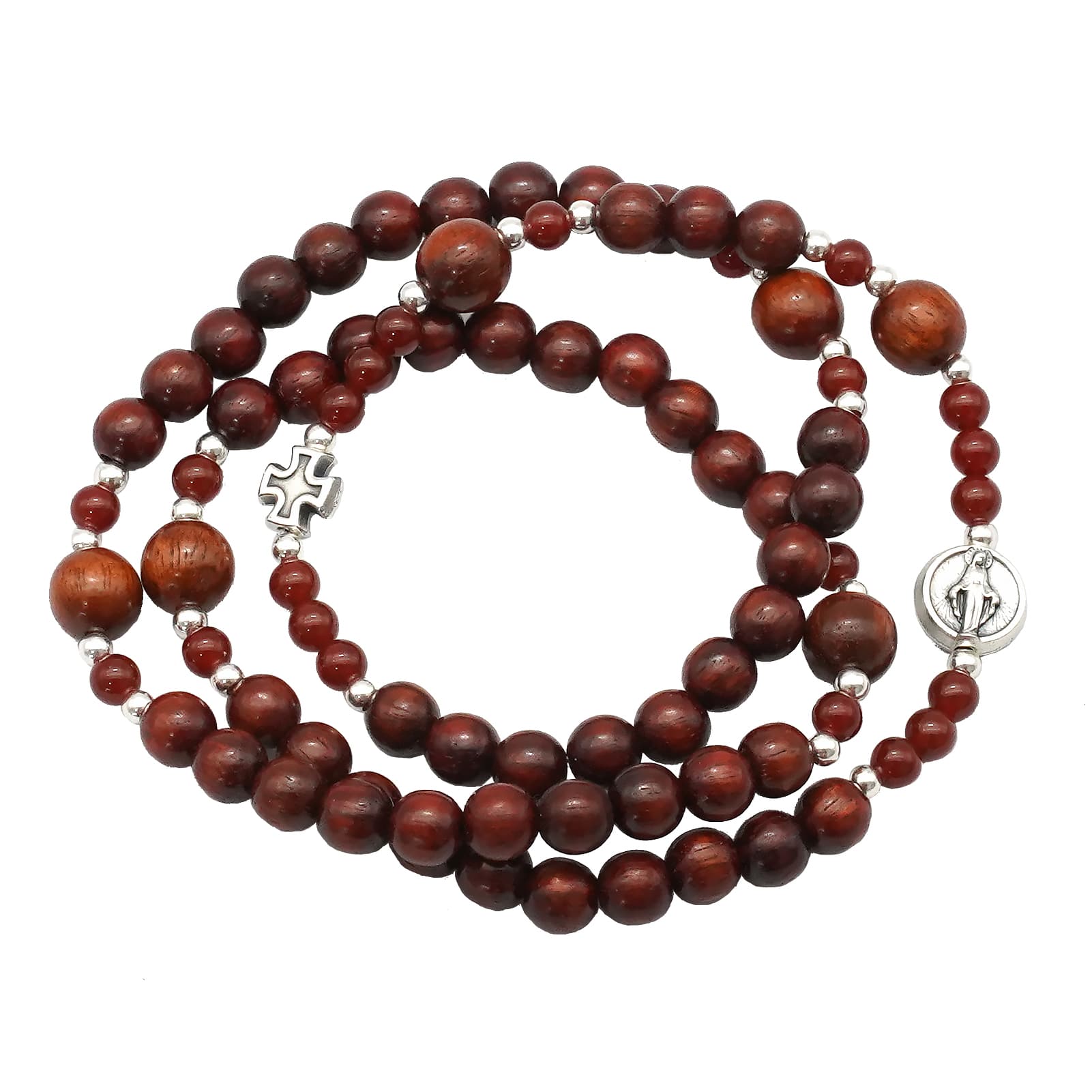 弹力手链-圣母显灵-小叶紫檀配红玛瑙-3圈