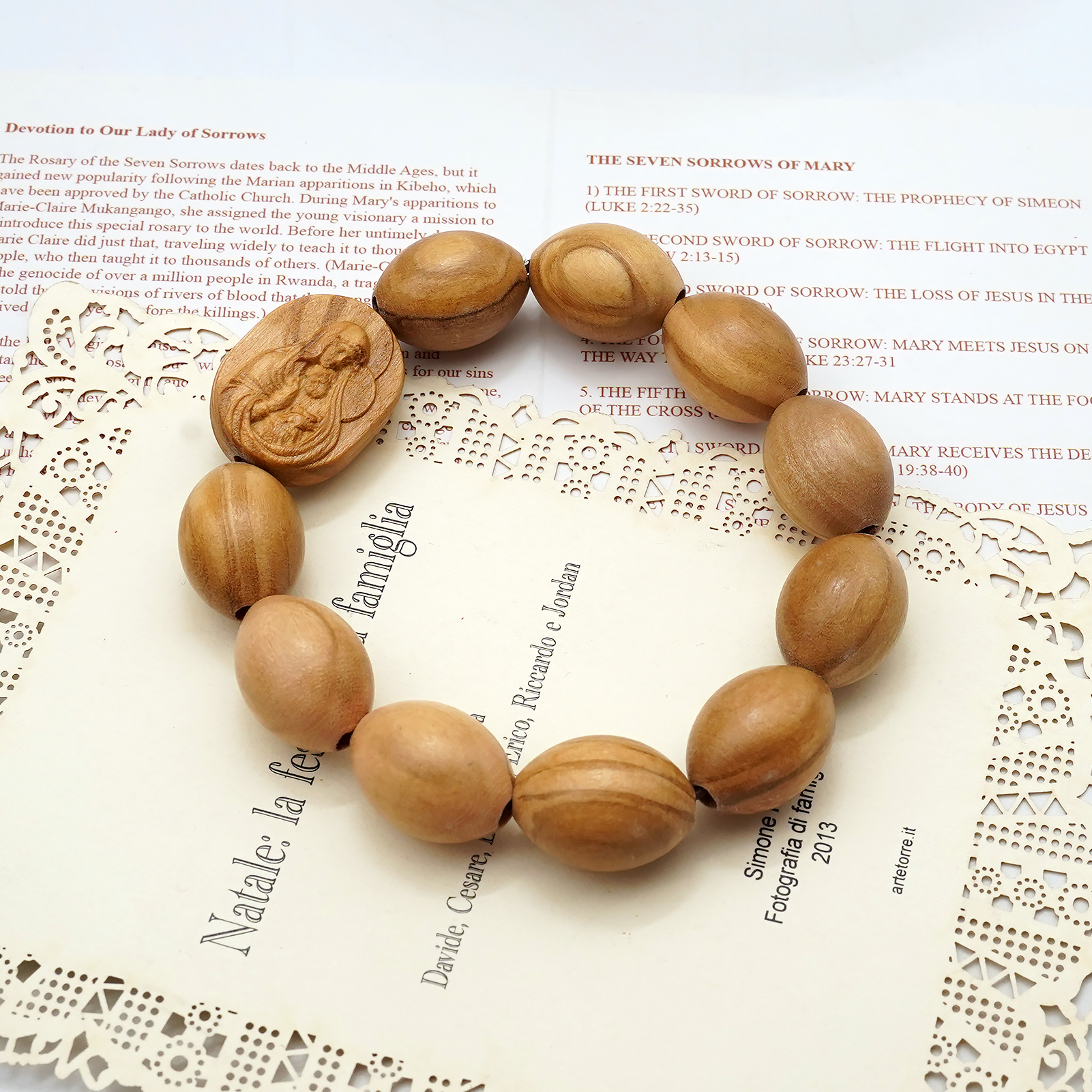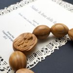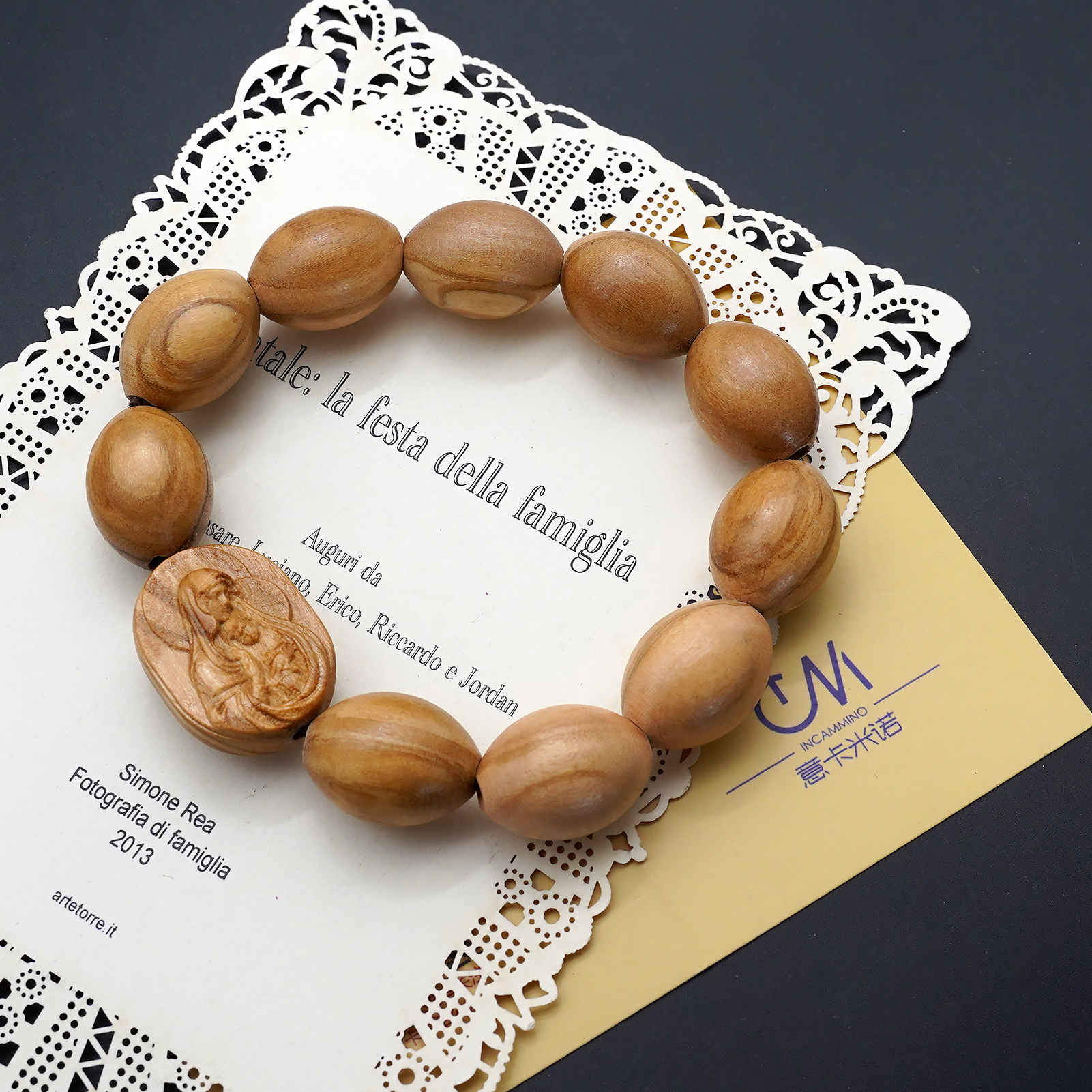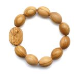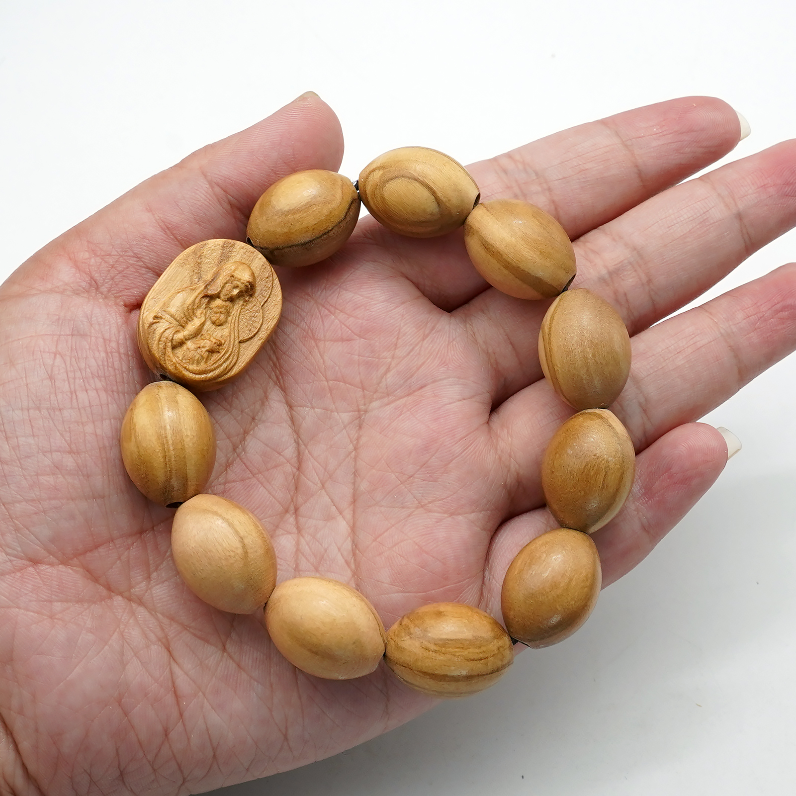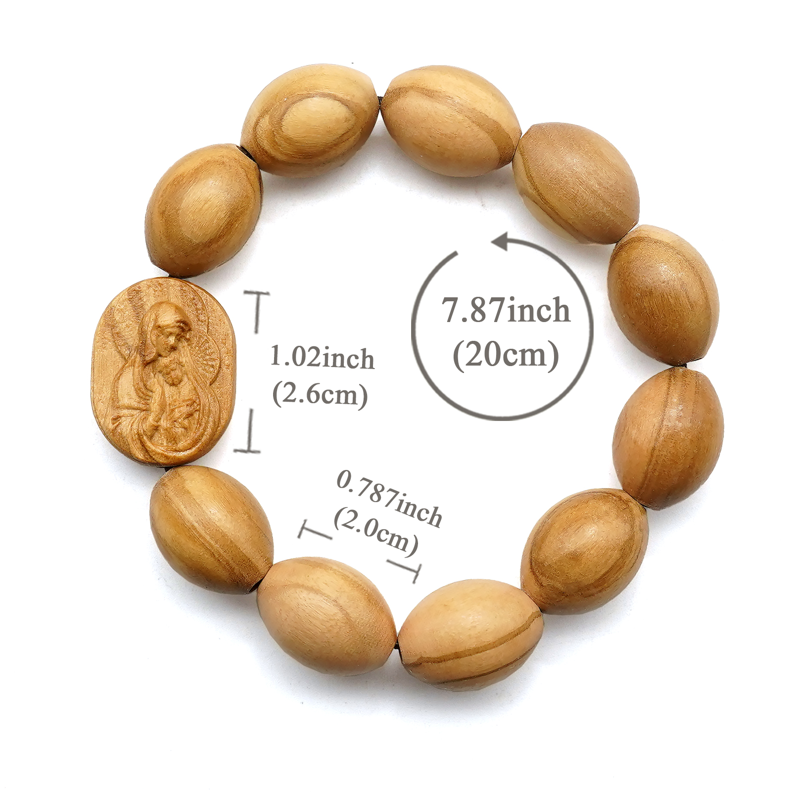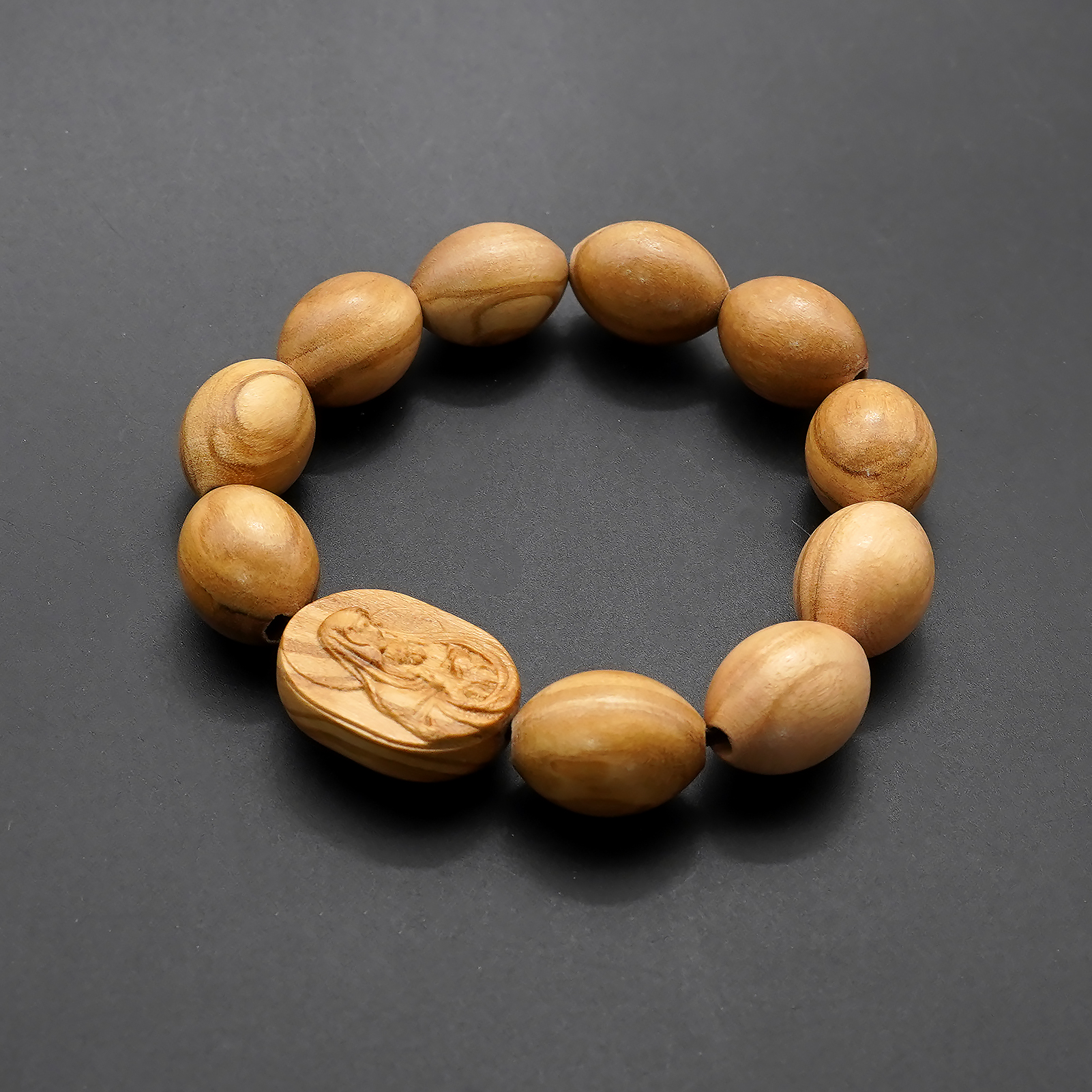 弹力手链-圣母抱耶稣椭圆牌-橄榄木珠-单圈长20cm