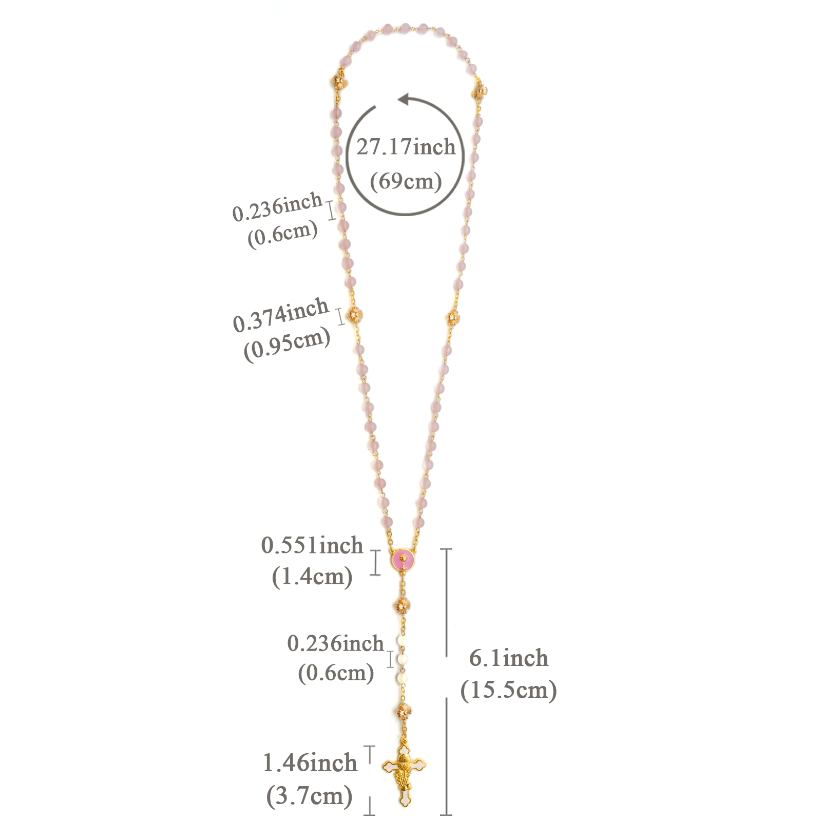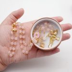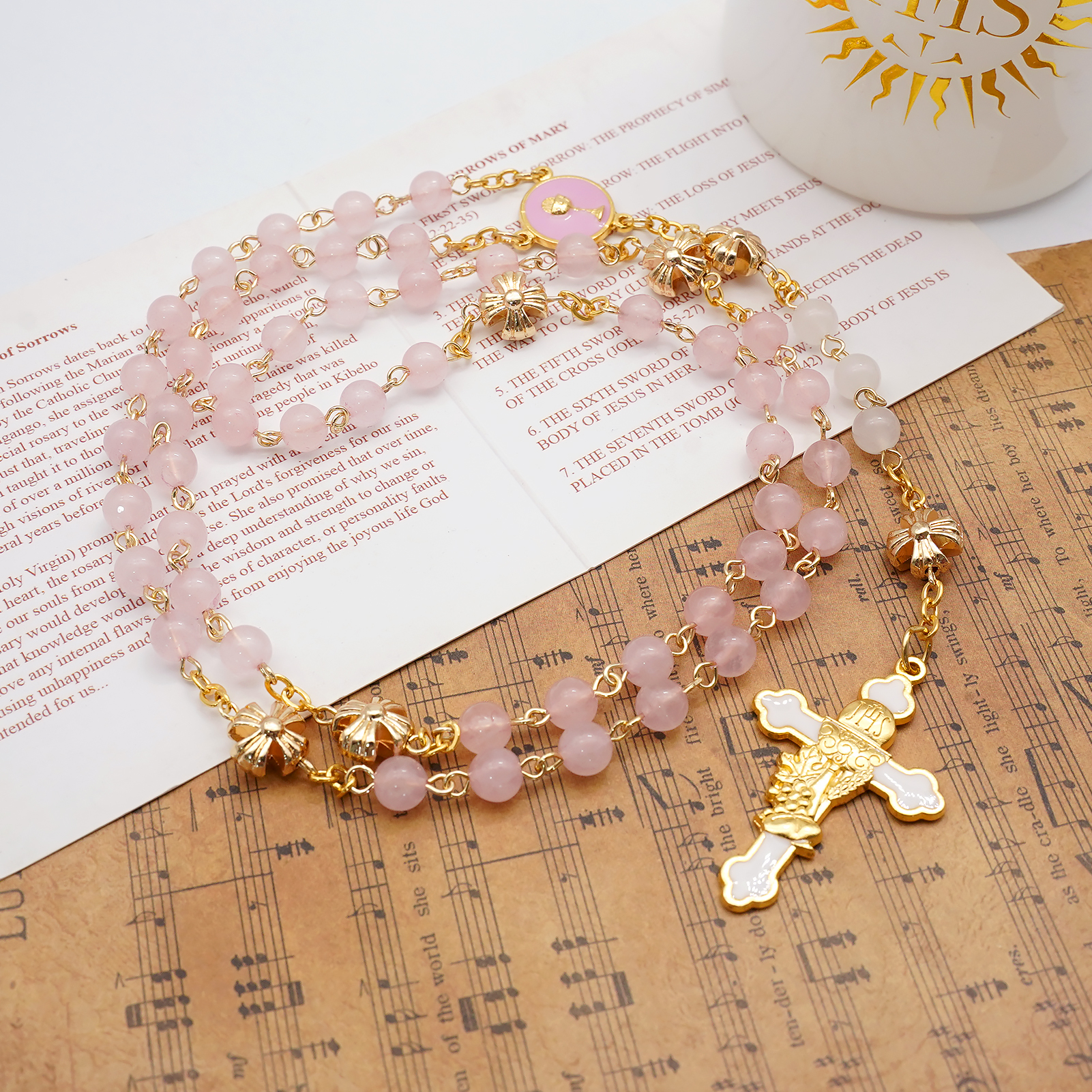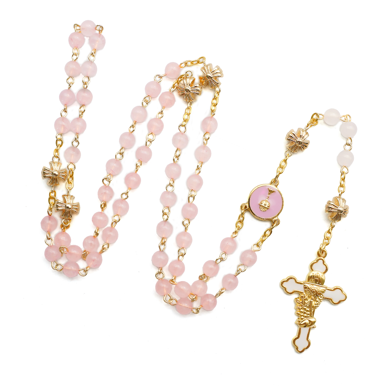 玫瑰念珠-初领圣体-粉水晶配白玉髓-6mm
