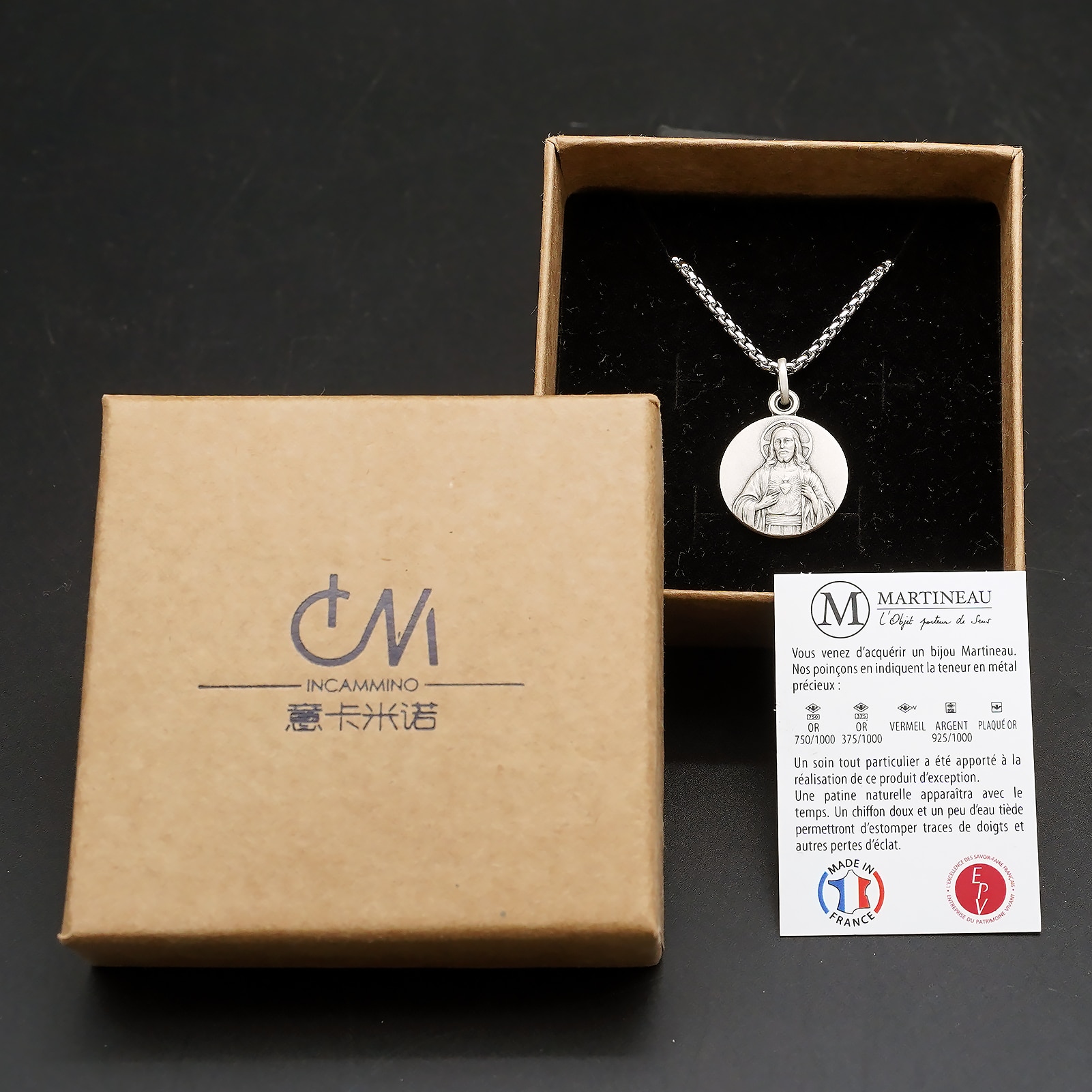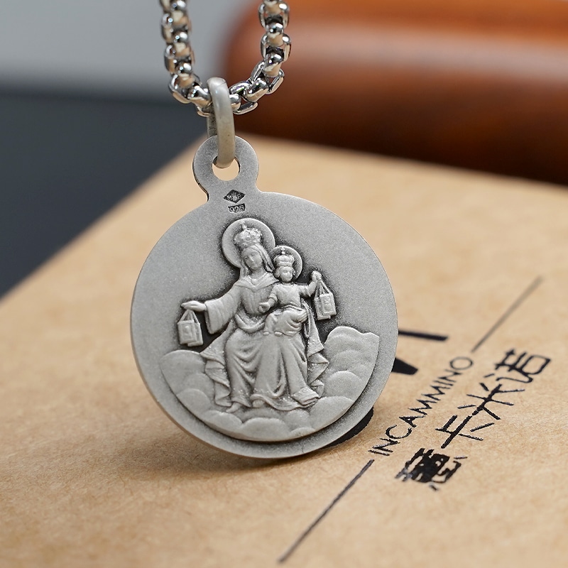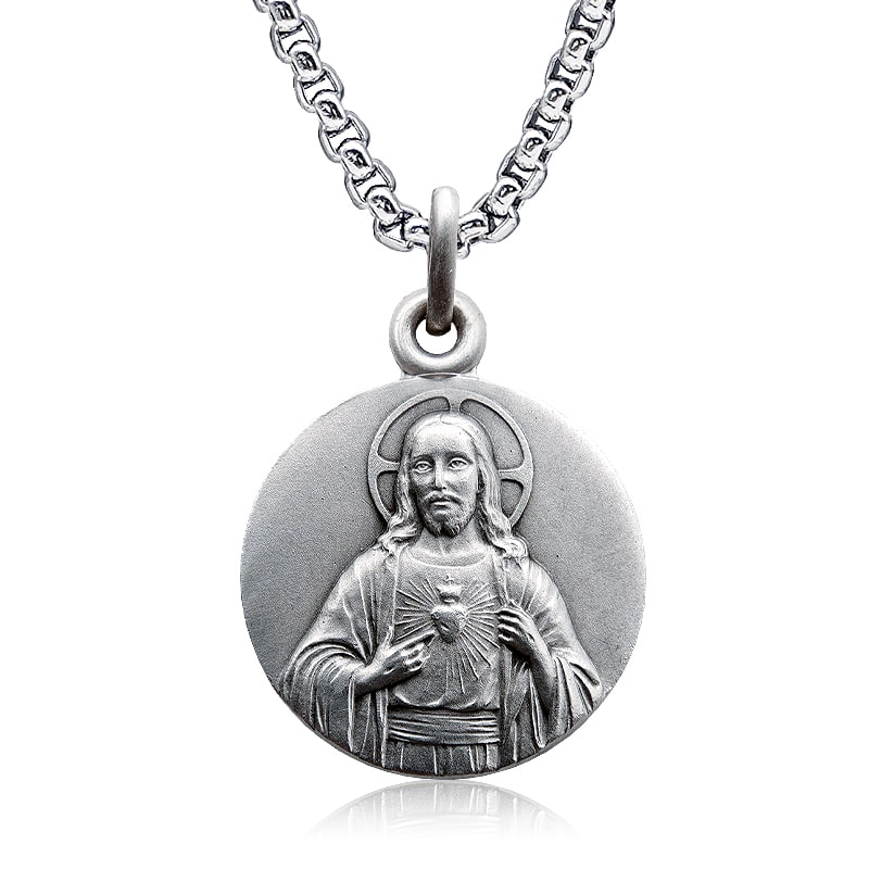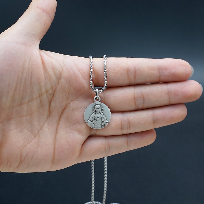 法国银圣牌-耶稣圣心-圣衣圣母18mm-送钛钢链