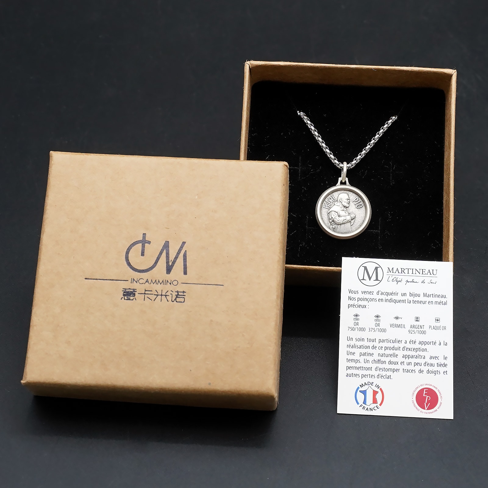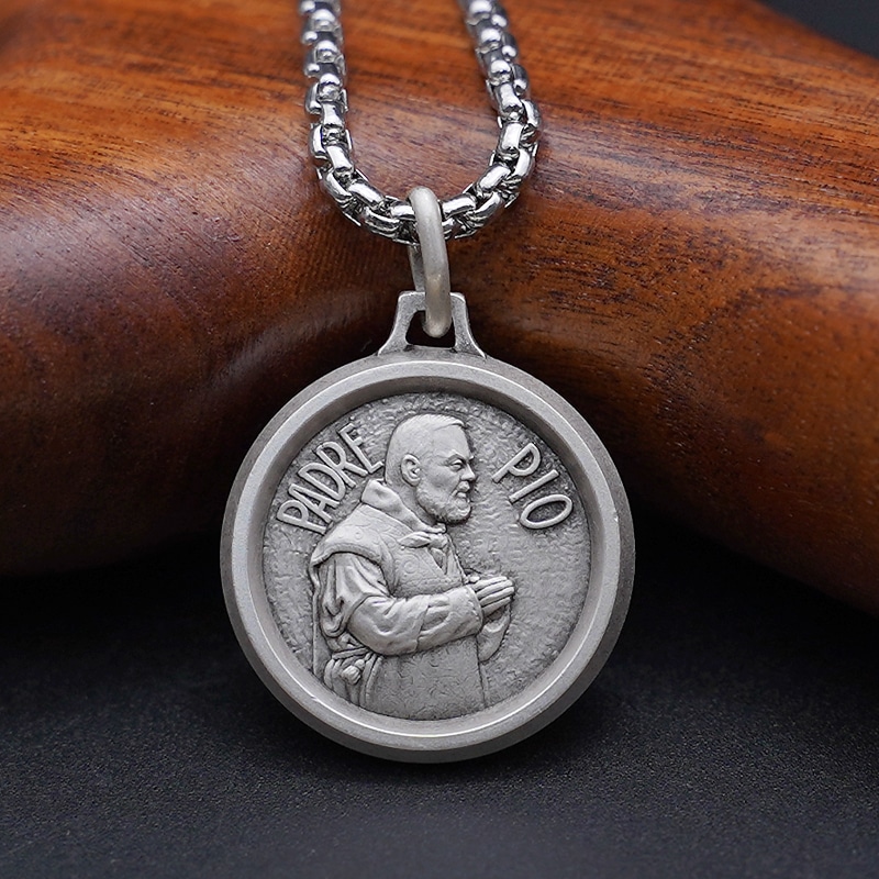 法国银圣牌-五伤庇护神父-18mm-送钛钢链