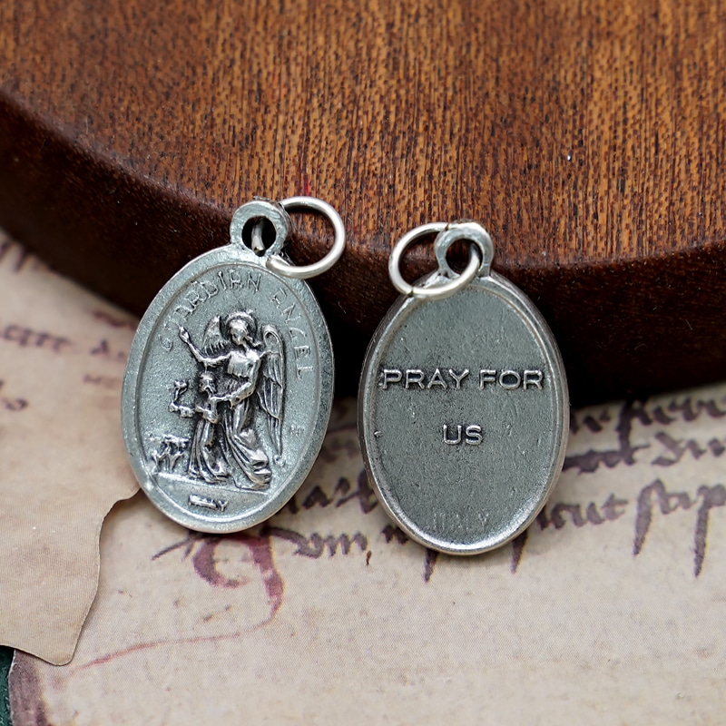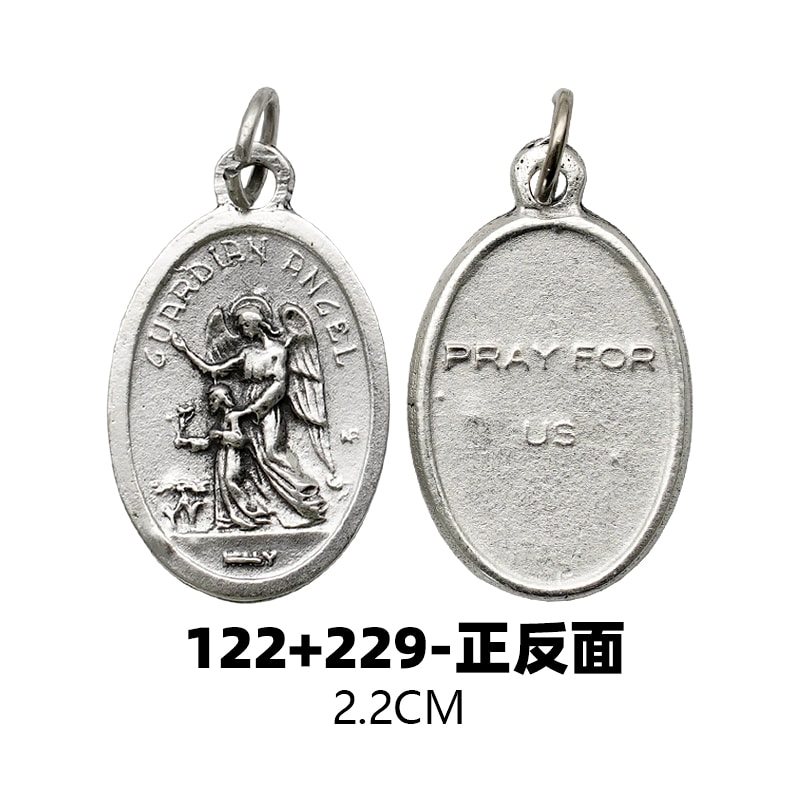 The Guardian Angel is a 2.2 cm high Catholic medal, ideal for DIY rosary accessories. Crafted with intricate details, this medal symbolizes divine protection and guidance, perfect for personalized jewelry.
