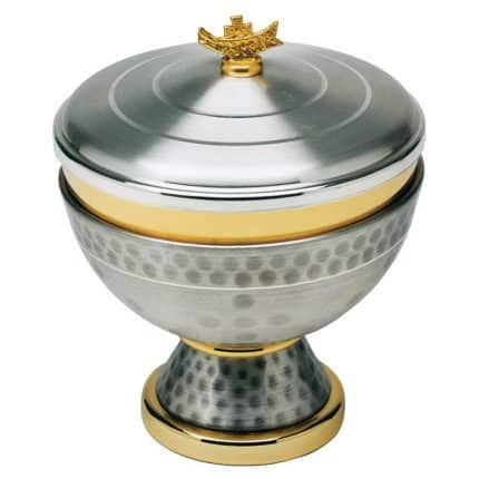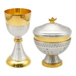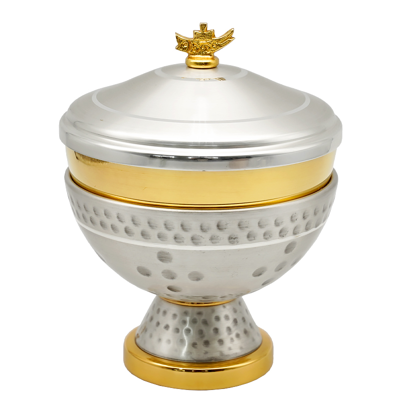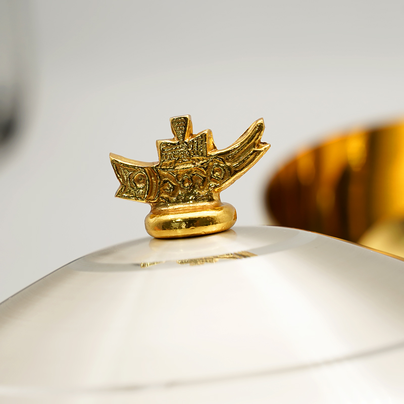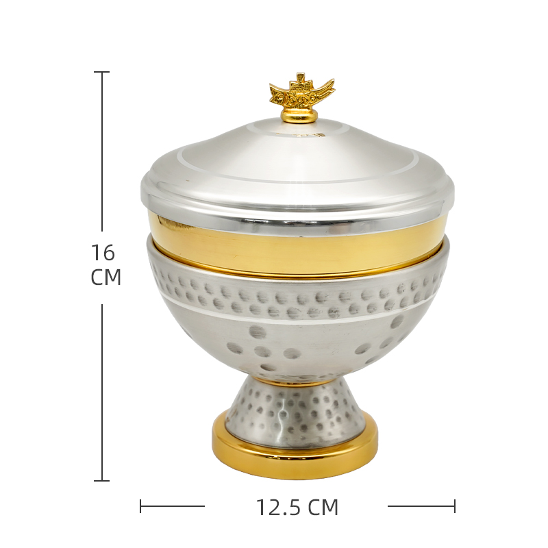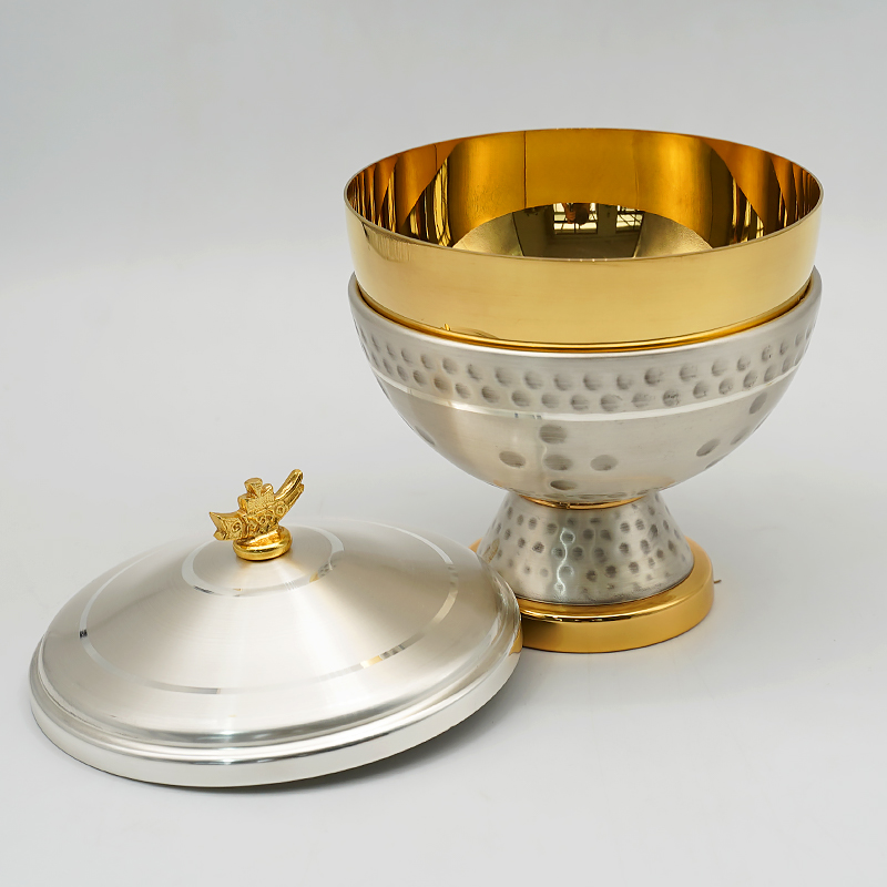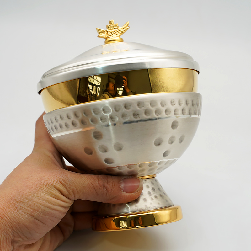 【现货】锤纹圣爵 – 高18厘米圣爵圣体盒套装铜镀24k金意大利进口神父弥撒用YS杯子组合