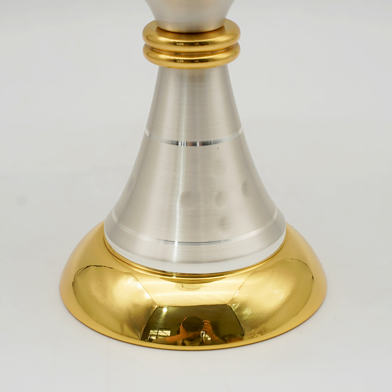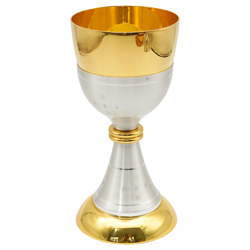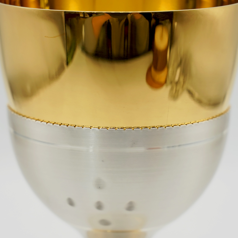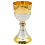 Silvered and golden brass chalice, enriched on base and on cup with knurling and hammering.