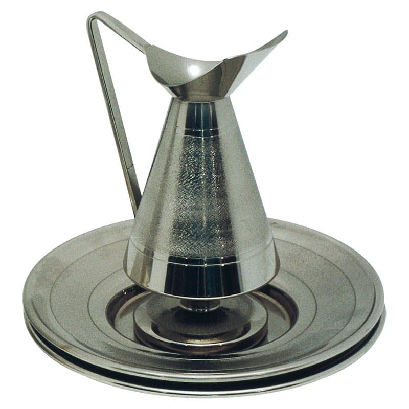 Ewer with two plates. Knurled background.