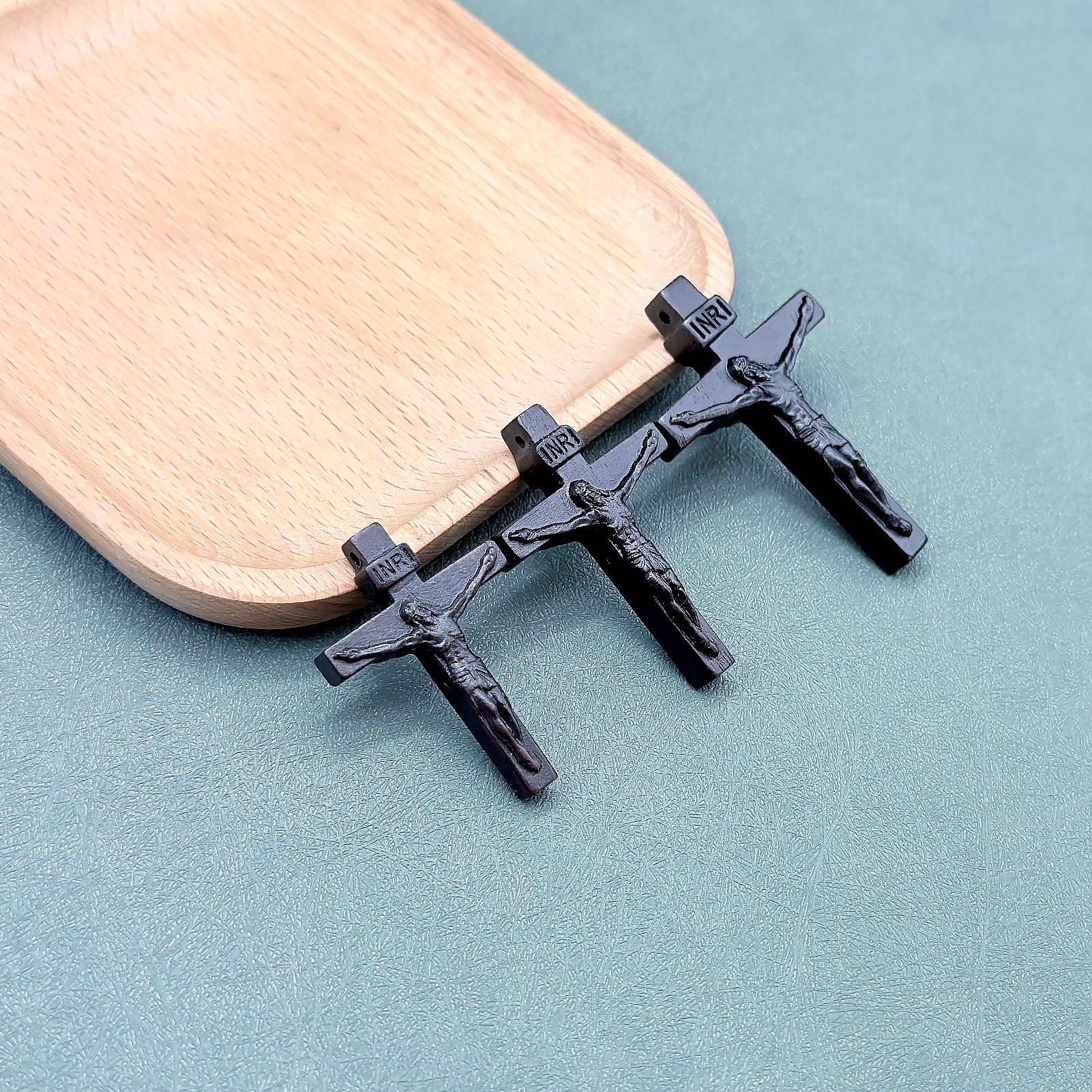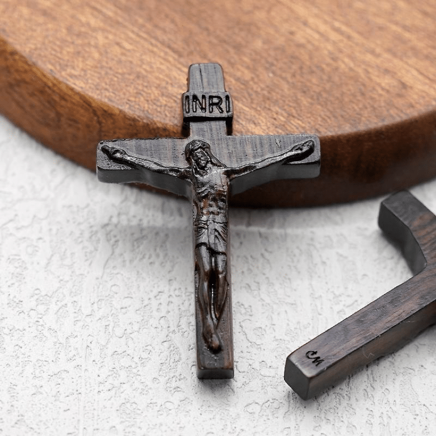 Handcrafted wooden crosses made from rosewood, ebony, or olive wood, available in 4.5 cm, 5 cm, and 6 cm sizes. Designed for DIY rosary makers with exceptional durability and elegant craftsmanship.